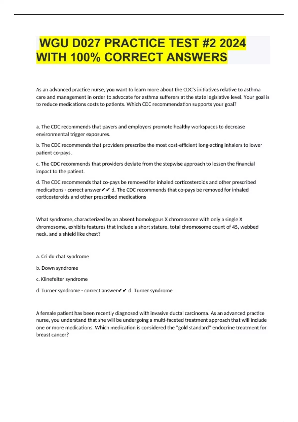WGU D027 EXAM 2024 WITH 100% ACCURATE SOLUTIONS GU D027 EXAM 2024 WITH 100% ACCURATE SOLUTIONS