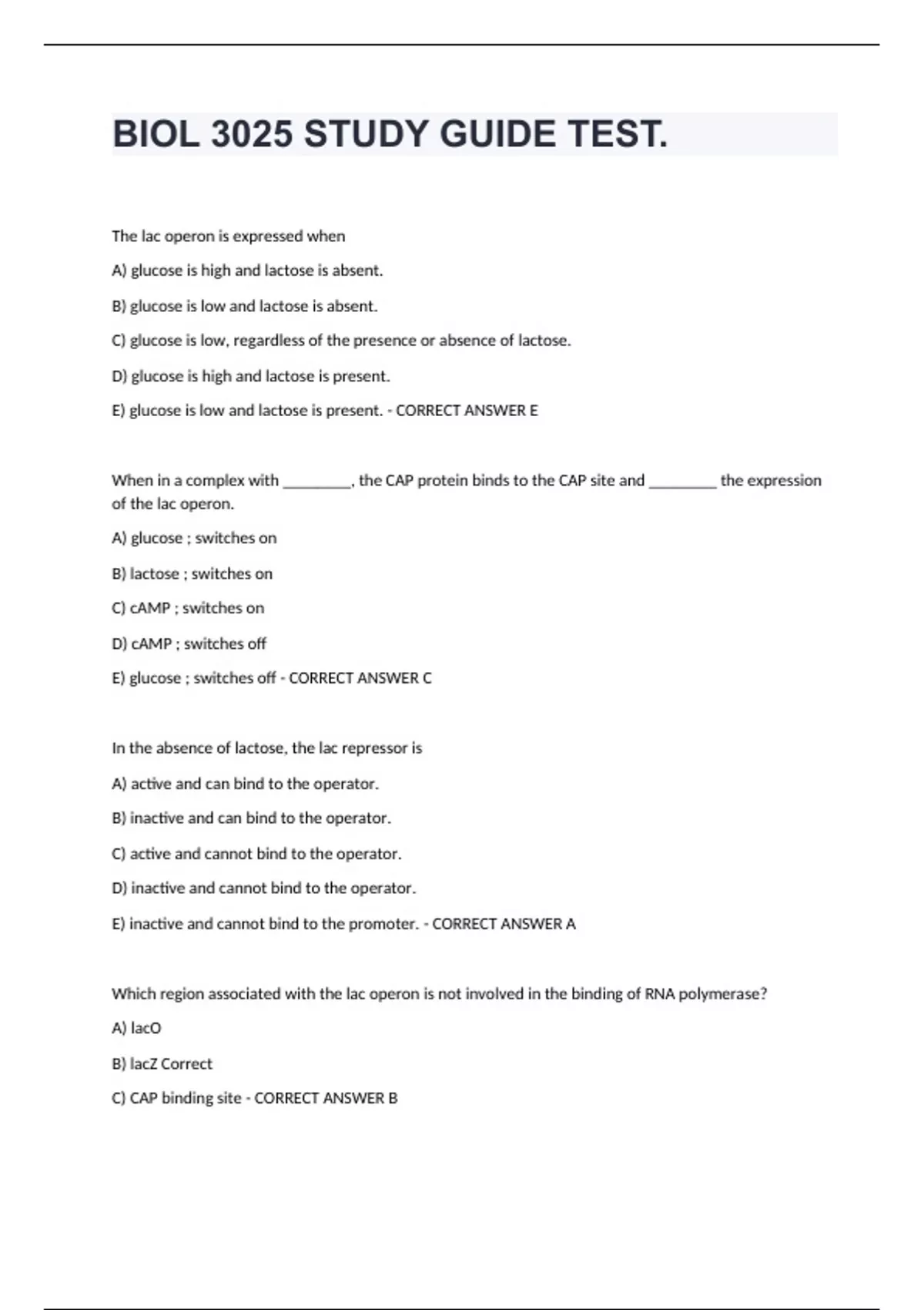 Exam (elaborations) Chapter 8 Biol 1408 Study Exam Questions With Correct Answers. Exam (elaborations) BIOL Chapter 11 Review Practice Study Exam Questions A Graded. Exam (elaborations) BIOL Ch. 42 Study Guide Test. Exam (elaborations) BIOL 2130 Chapter 53 Questions Correctly Answered. Exam (elaborations) BIOL Chapter 7 Review Study Guide