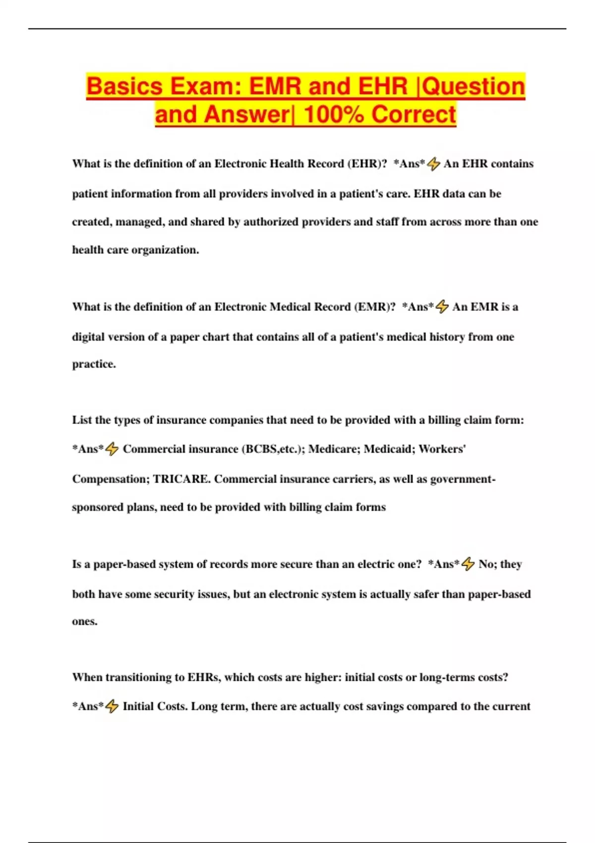 EMR Comprehensive Test Bank |PACKAGE DEAL| [SET 1]