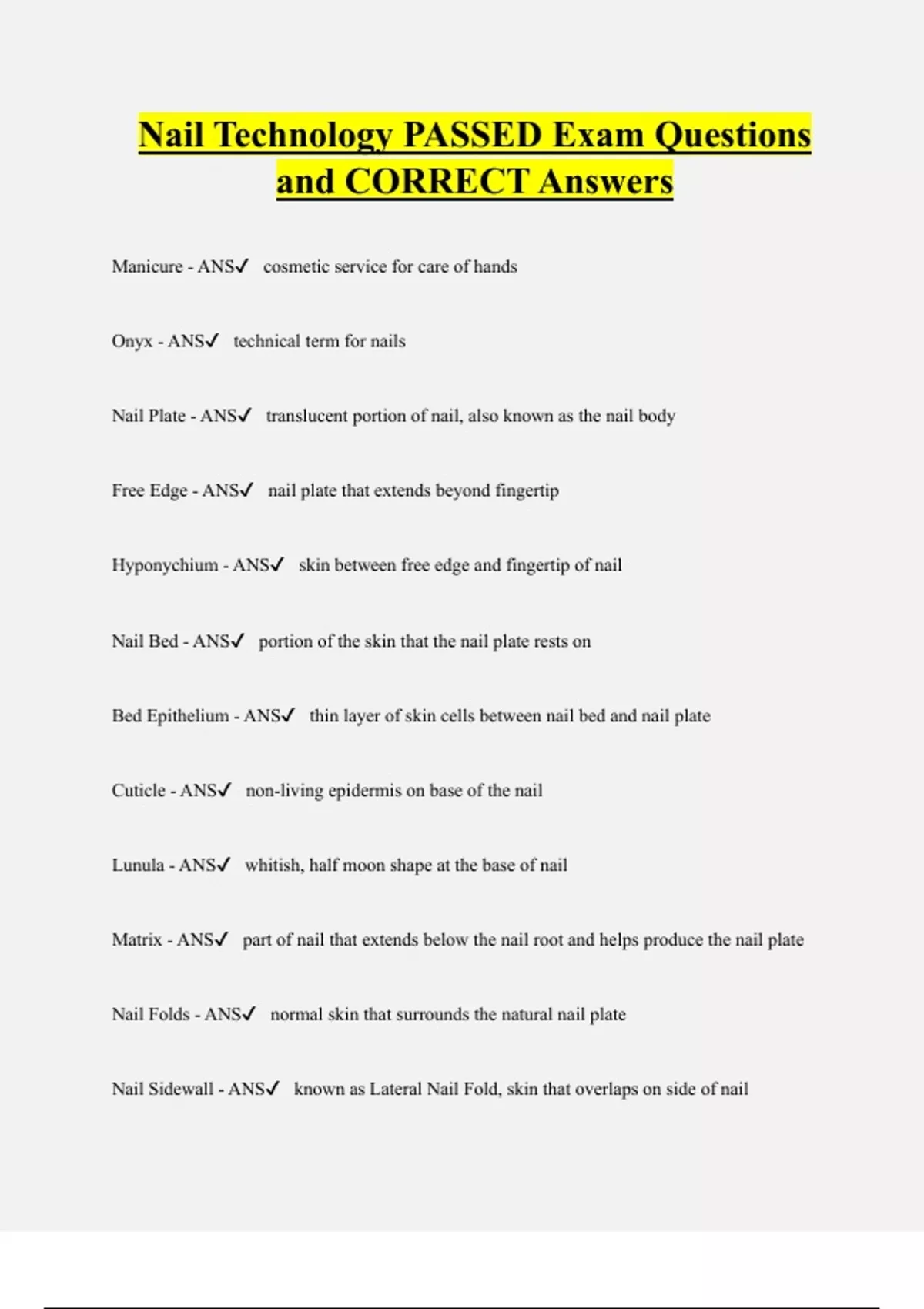 Nail Tech Bundled Exam Questions Package with Correct Answers