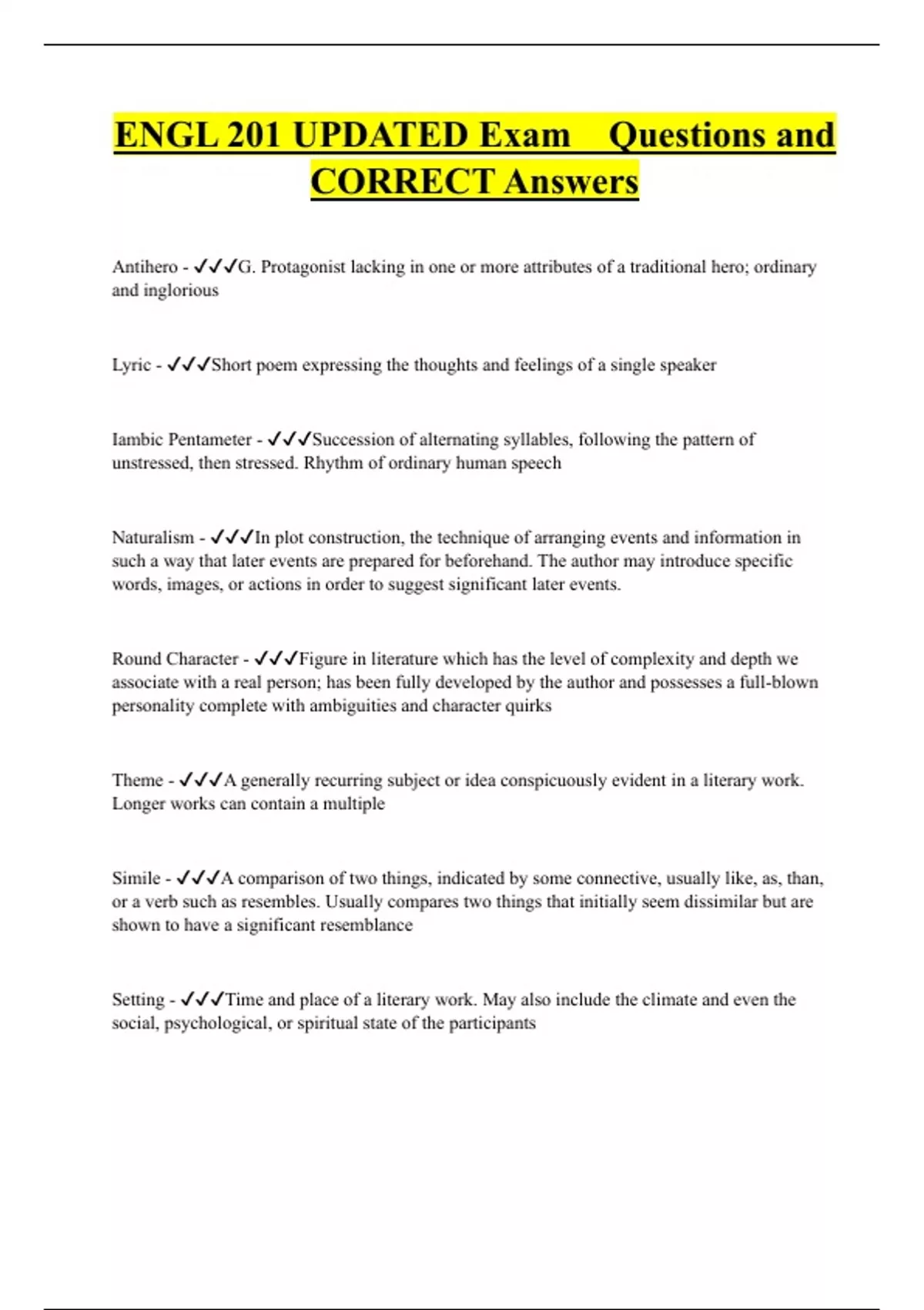 ENGL 201 Bundled Exam Questions Package with Correct Answers