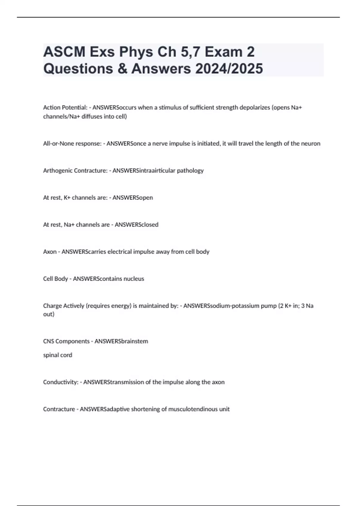 ASCM Exs Phys Ch 5,7 Exam 2 Questions & Answers 2024/2025