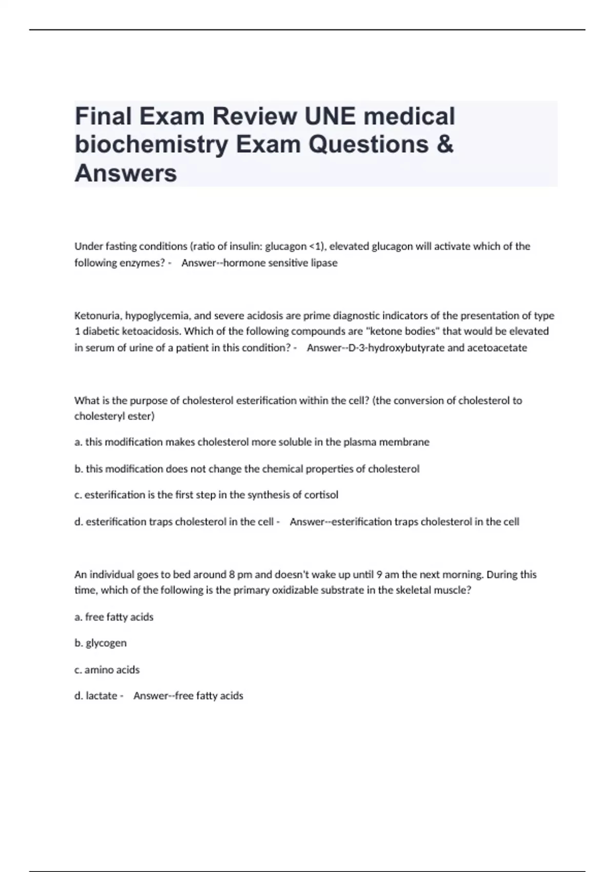 Final Exam Review UNE medical biochemistry Exam Questions & Answers.