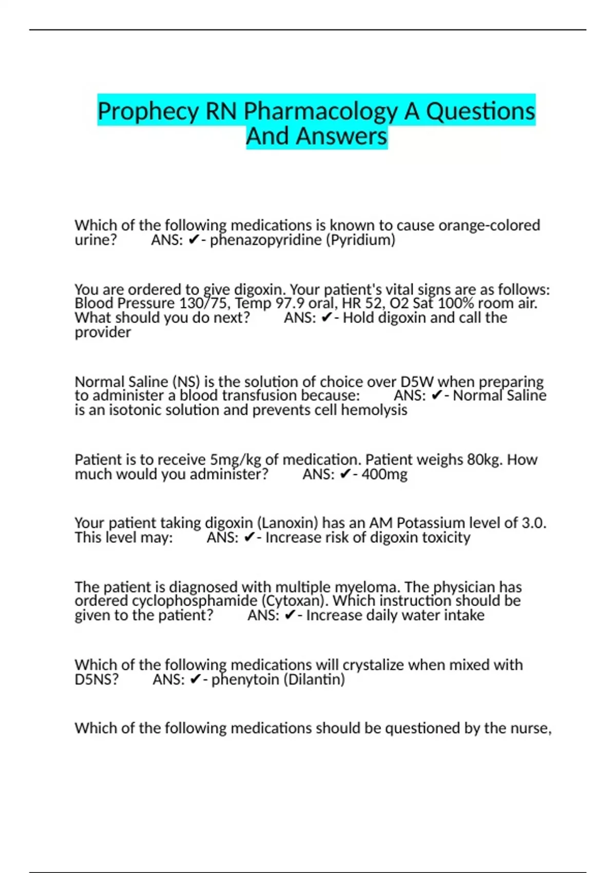 ALL BUNDLED HERE::: Pharmacology Assessment A Prophecy RN Pharmacology A Questions With Correct Answers Already Graded A+