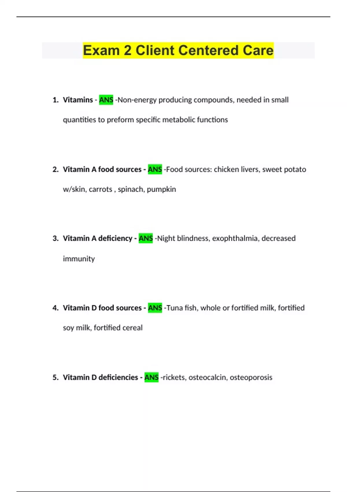 Client Centered Care Exams With Correct Answers PACKAGE DEAL