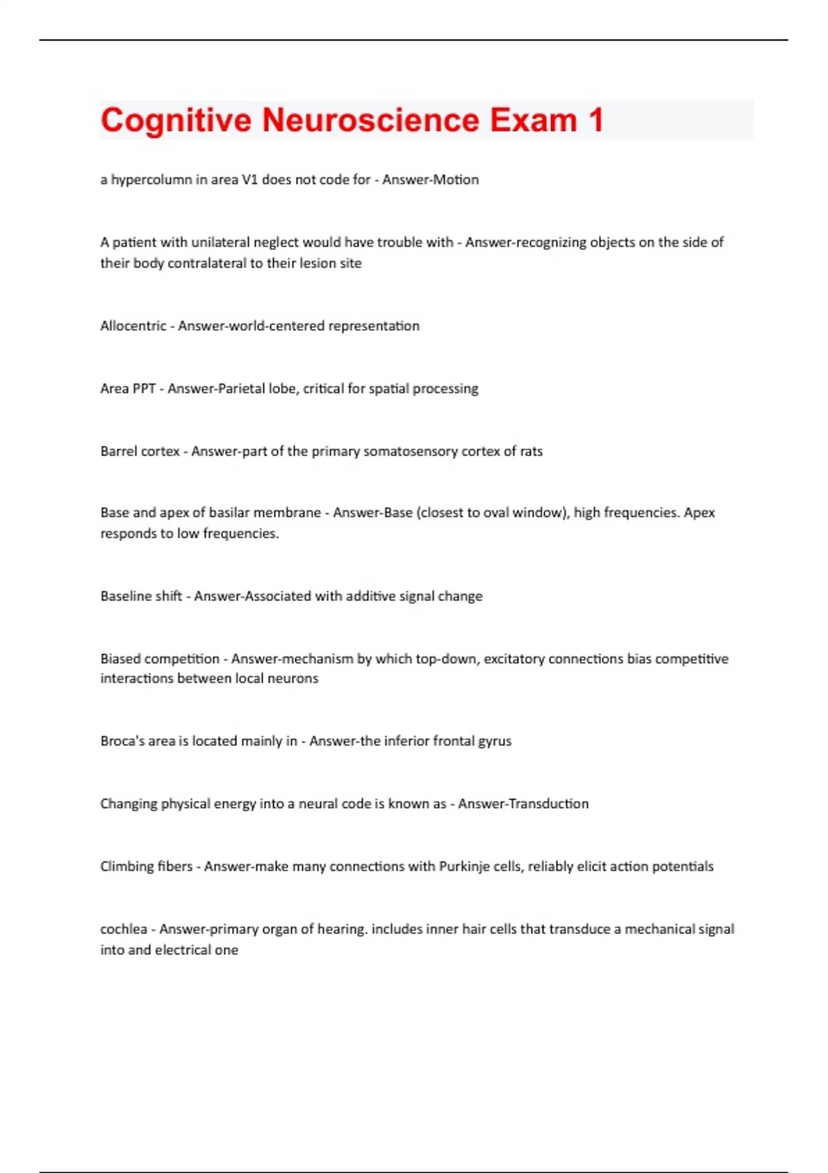 Cognitive Neuroscience exam #1 Questions And Answers Graded A+