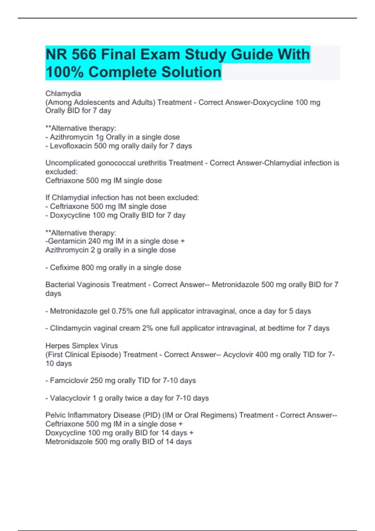 Package deal for NR566 Exam | Latest Update | 100% Correct | Verified Answers