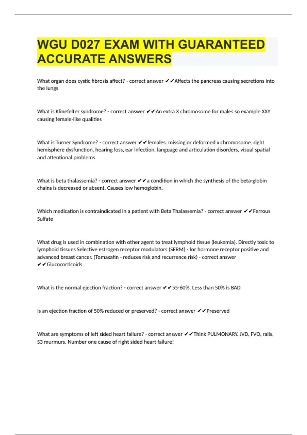 WGU D027 EXAM WITH GUARANTEED ACCURATE ANSWERS WGUD027 EXAM 2024 WITH GUARANTEED CORRECT ANSWERS WGUD027 PATHOPHARM EXAM WITH GUARANTEED CORRECT ANSWERS WGUD027 COURSE MATERIAL QUESTIONS WITH CORRECT ANSWERS