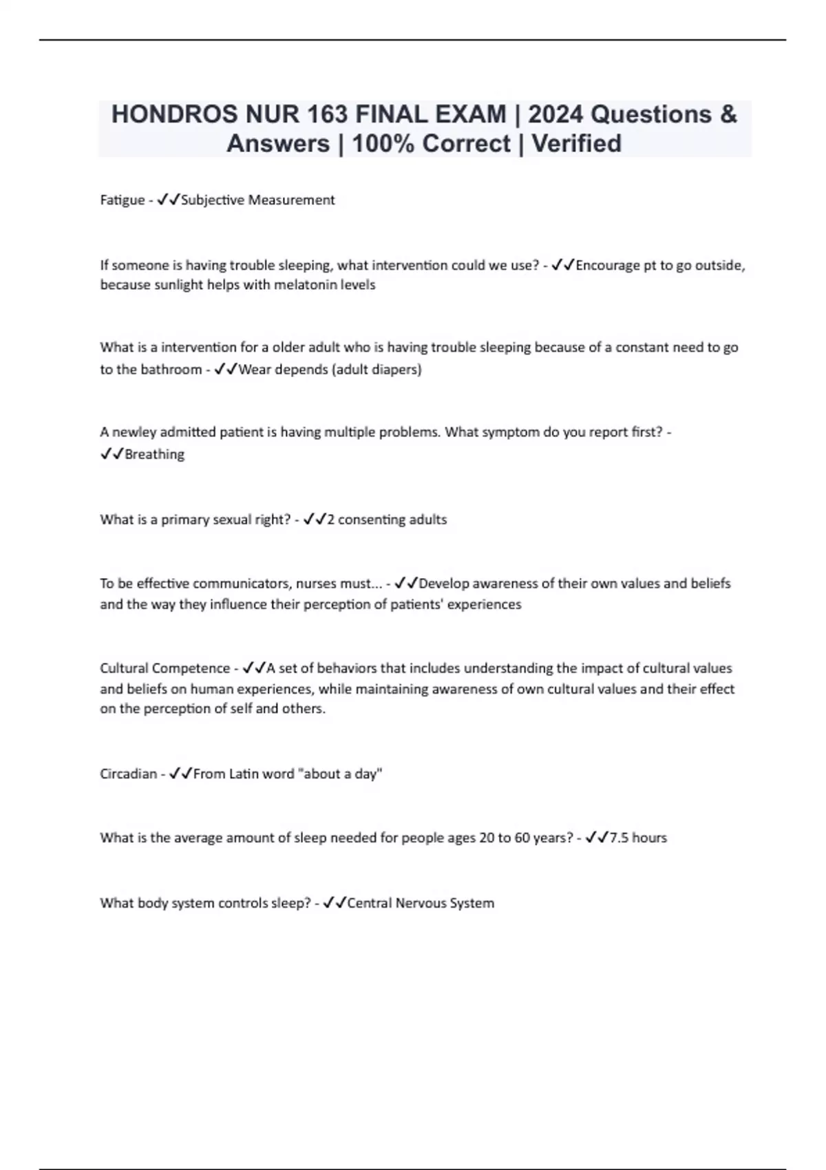 HONDROS NUR 163 FINAL EXAM | 2024 Questions & Answers | 100% Correct | Verified