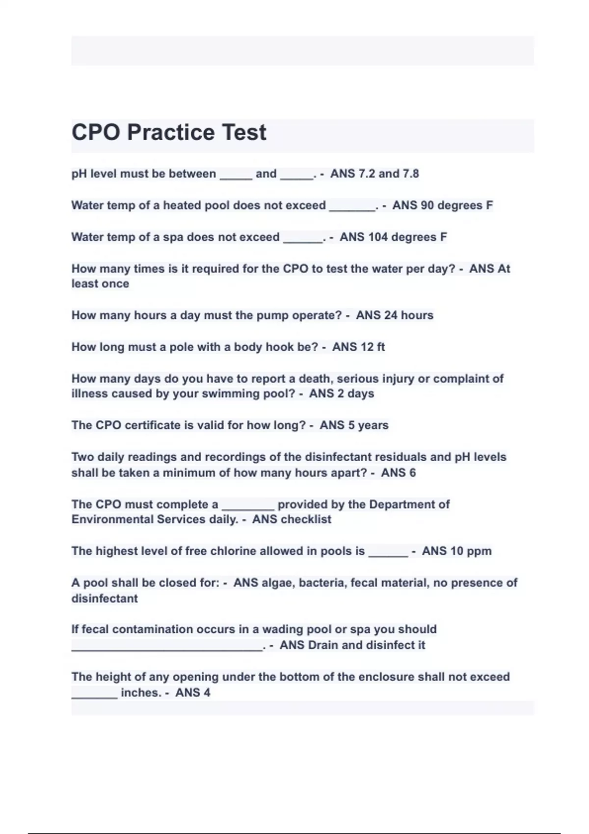 CPO certified pool operator Exam Questions and Answers 2024( A+ GRADED 100% VERIFIED).