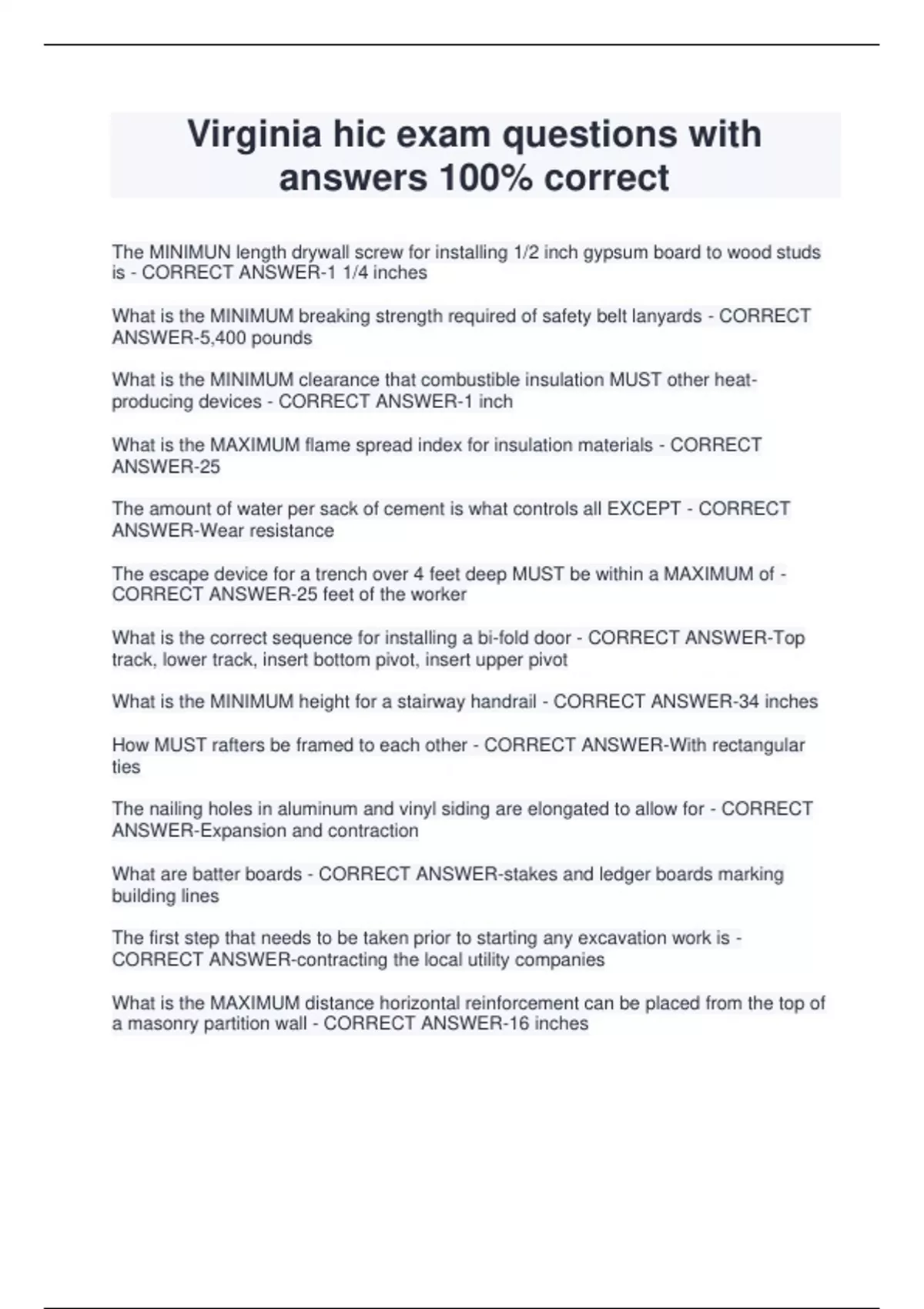 HIC Virginia Exam study guide questions and answers 2024 updated Virginia hic exam questions with answers 100% correct Virginia Hic/VA Contractor General Questions and answers 2024 solutions Virginia Contractor Practice Test (virginia hci) 2024 questions and answers Virginia hic State Test Practice 2 exam 2024 updated Q&A Virginia hic practice exam