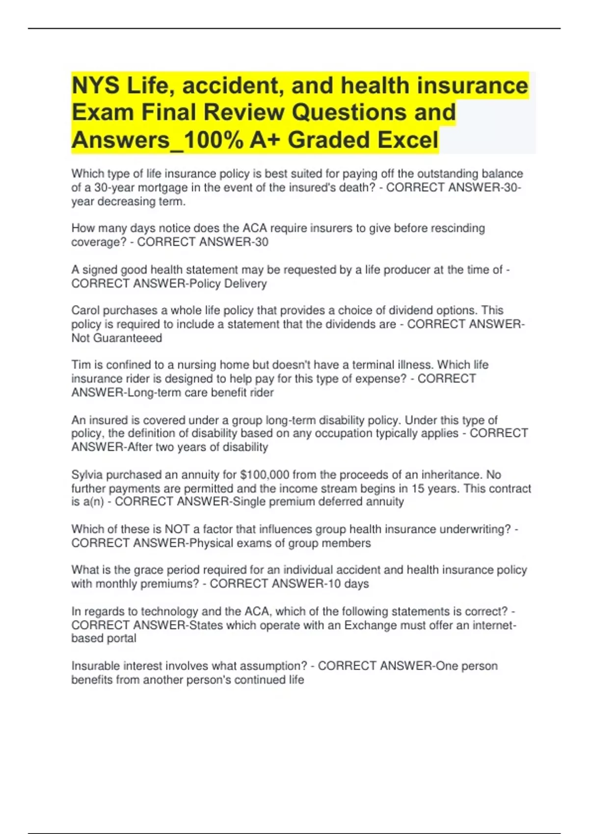 New York Life, Accident, and Health Updated Exam Review, Questions and Answers_100% Already Graded A+ PACKAGE DEAL 100% A+ GRADED