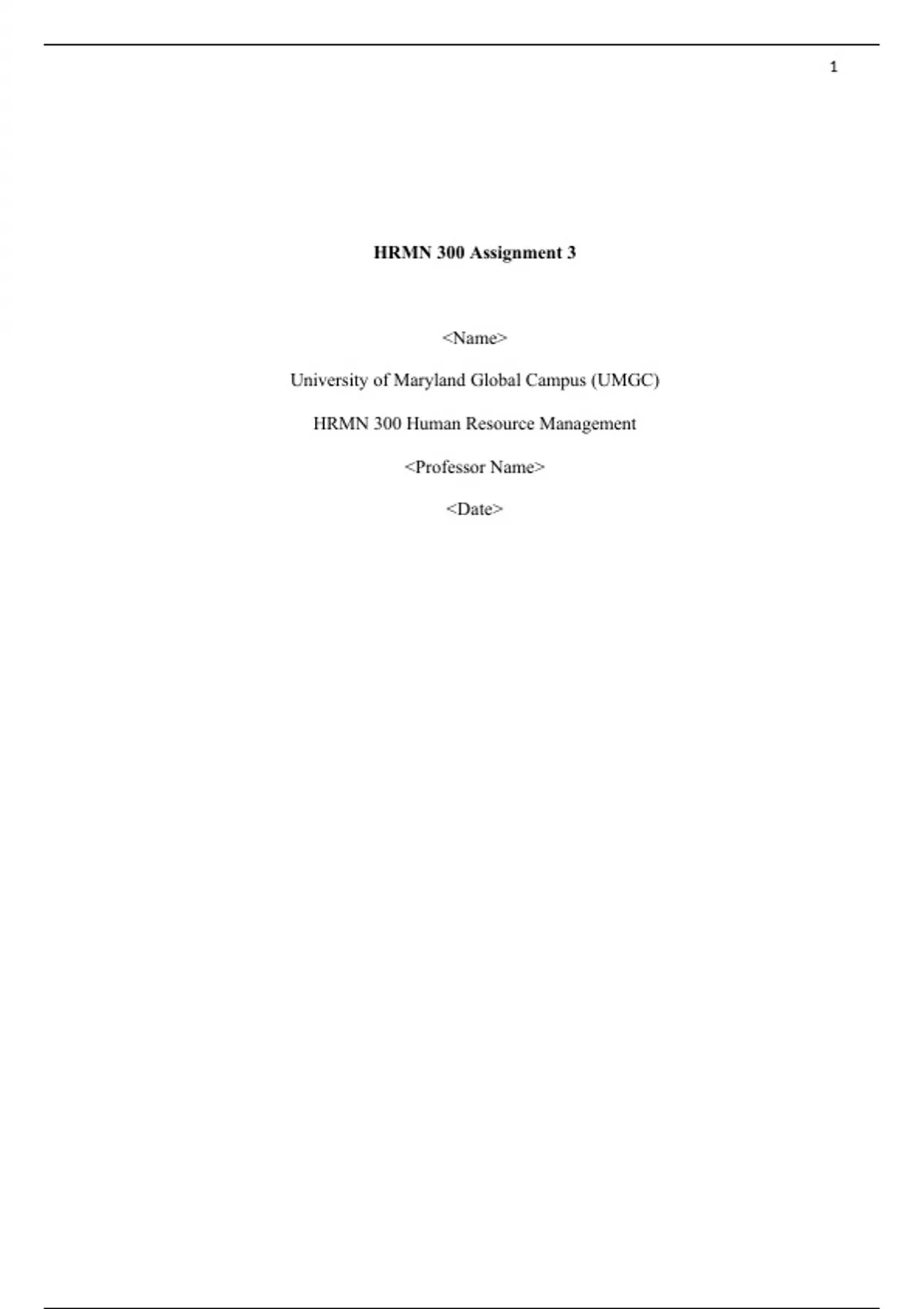 HRMN 300 Human Resource Management Assignments 1 to 3 (Exams)