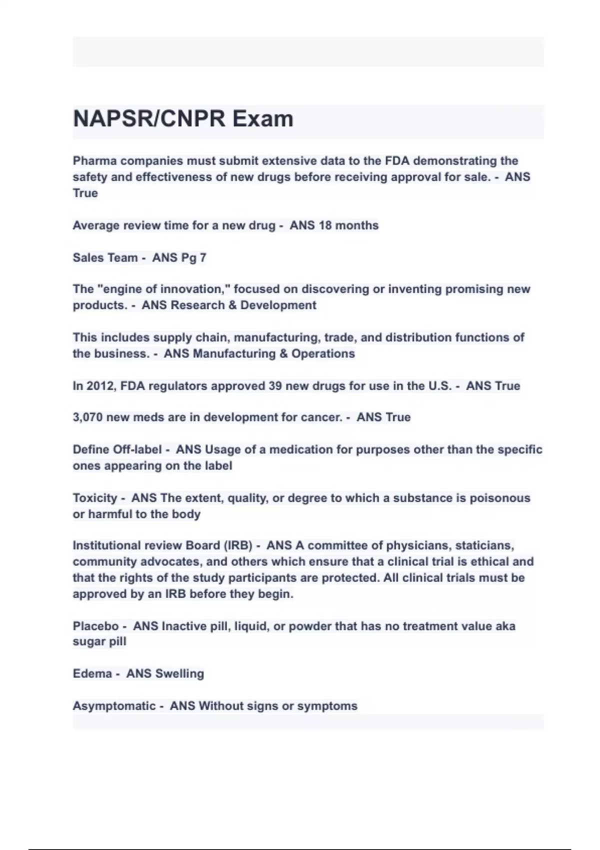 NAPSR CNPR CHAPTER 12 Biopharmaceutical Drug Development Exam Questions and Answers 2024( A+ GRADED 100% VERIFIED).