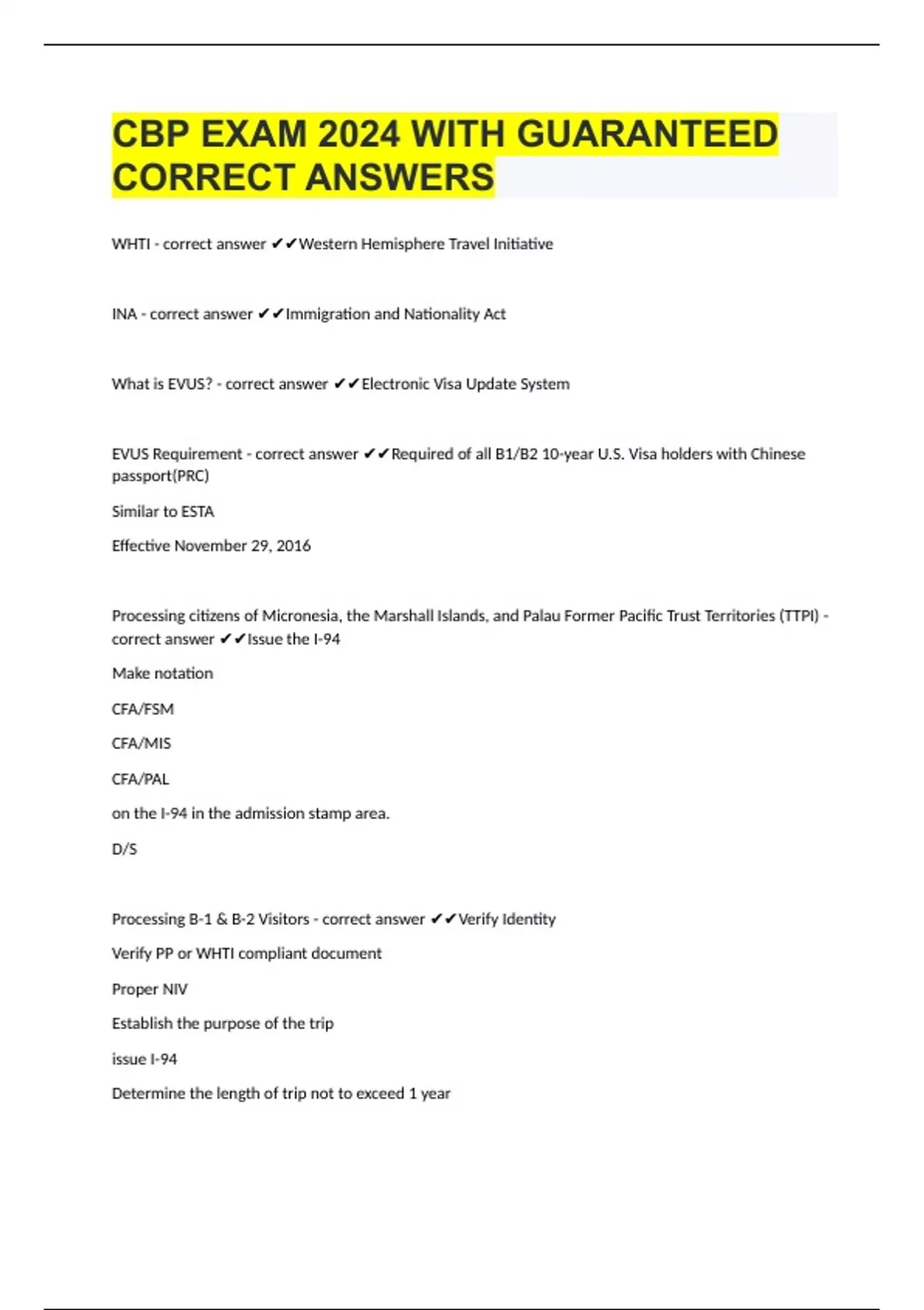 CBP EXAM TEST WITH GUARANTEED CORRECT ANSWERS BORDER PATROL PRACTICE EXAM WITH GUARANTEED CORRECT ANSWERS CBP OFFICER ENTRANCE EXAM WITH GUARANTEED CORRECT ANSWERS CBP EXAM/LOGIC WITH GUARANTEED CORRECT ANSWERS