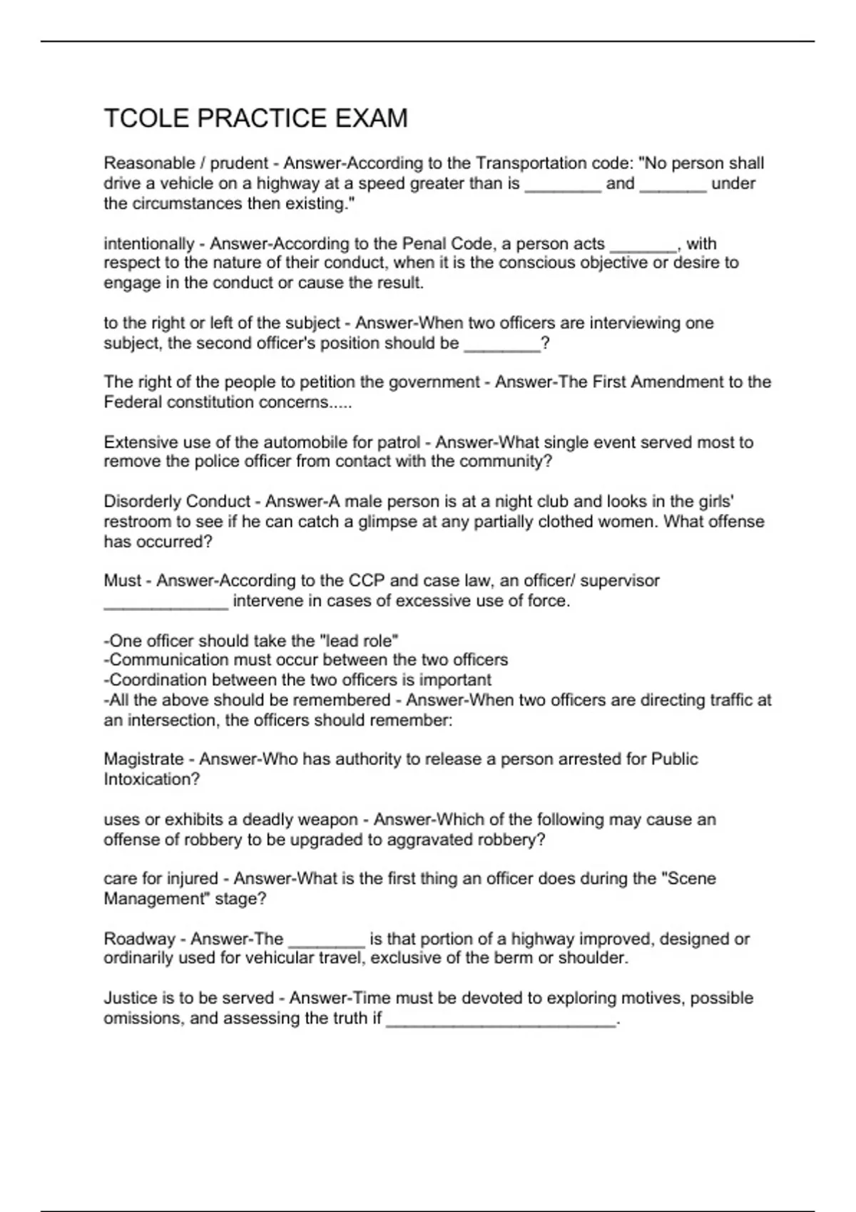 Exam (elaborations) TCOLE practice exam 2 Exam (elaborations) TCOLE STATE EXAM REVIEW 3 Exam (elaborations) TCOLE (Master Study Guide) 4 Exam (elaborations) TCOLE PRACTICE EXAM 5 Exam (elaborations) TCOLE PREP (TEEX) QUESTIONS AND ANSWERS 6 Exam (elaborations) TCOLE STATE TEST QUESTIONS 7 Exam (elaborations) TCOLE EXAM 1 QUESTIONS AND ANSWERS