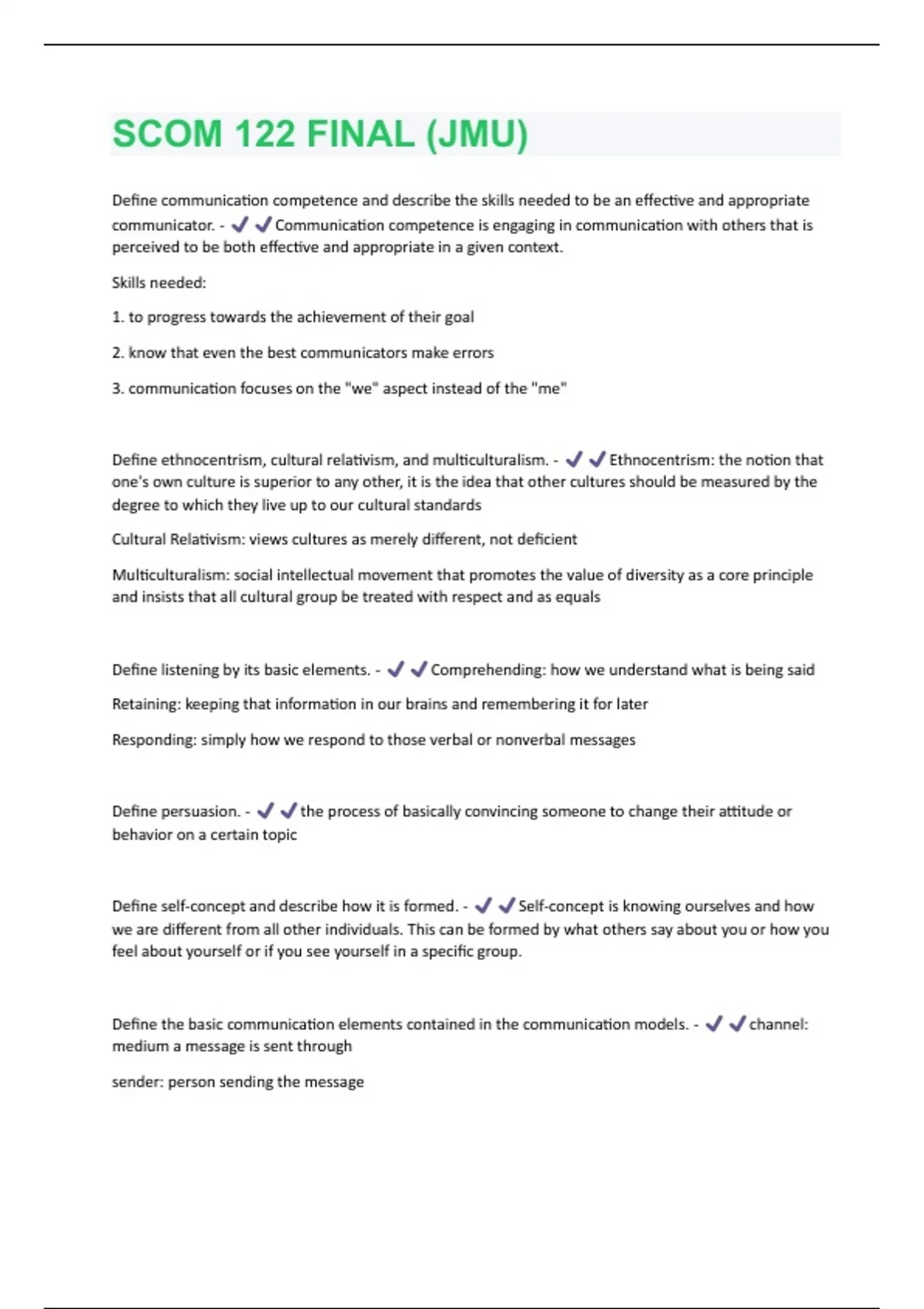 SCOM 123 Final Exam JMU Questions & Answers Already Passed!!