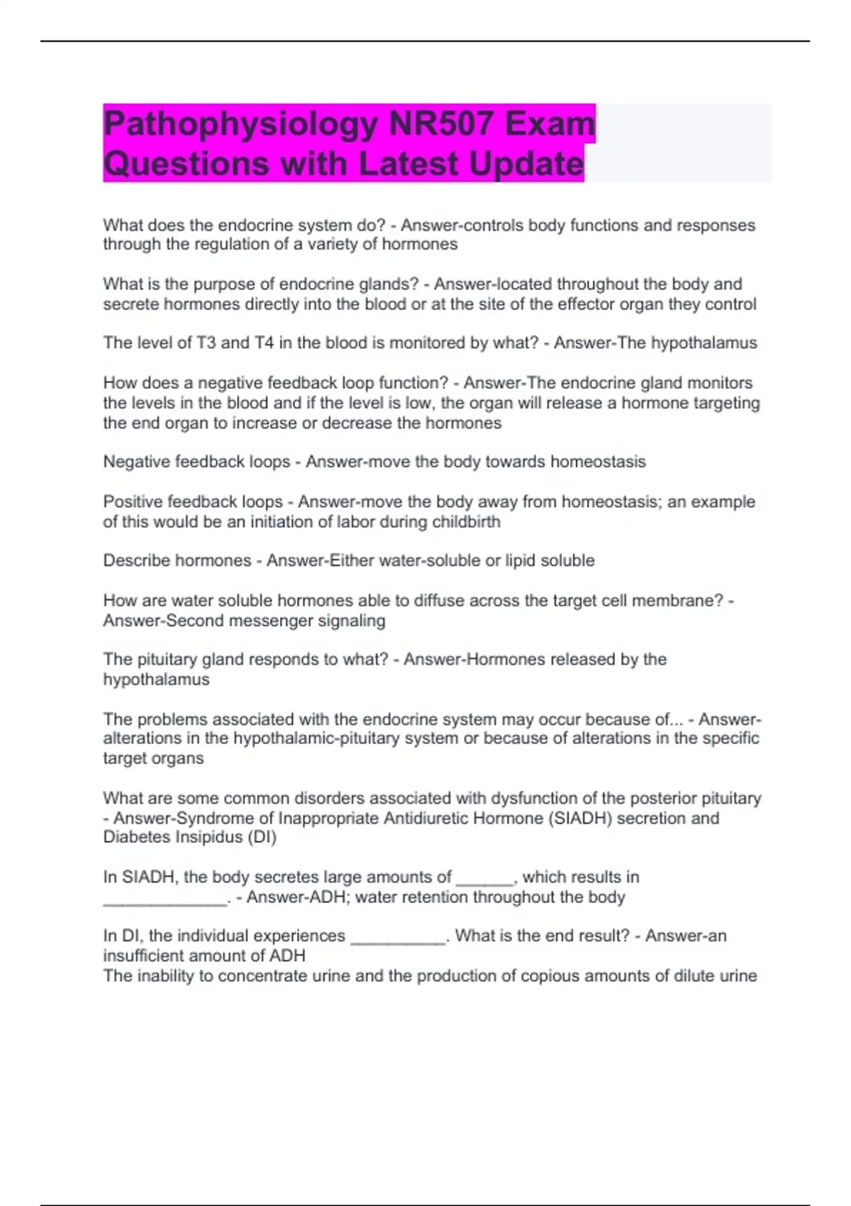 Exam (elaborations) Advanced Pathophysiology NR 507 Final Exam Questions with Verified Answers Exam (elaborations) Advanced Pathophysiology NR507 Exam Questions and Answers Exam (elaborations) NR 507- Advanced Patho Midterm Exam Questions with Latest Update Exam (elaborations) NR 507 Advanced Patho Midterm Exam Study Guide Questions and Answ