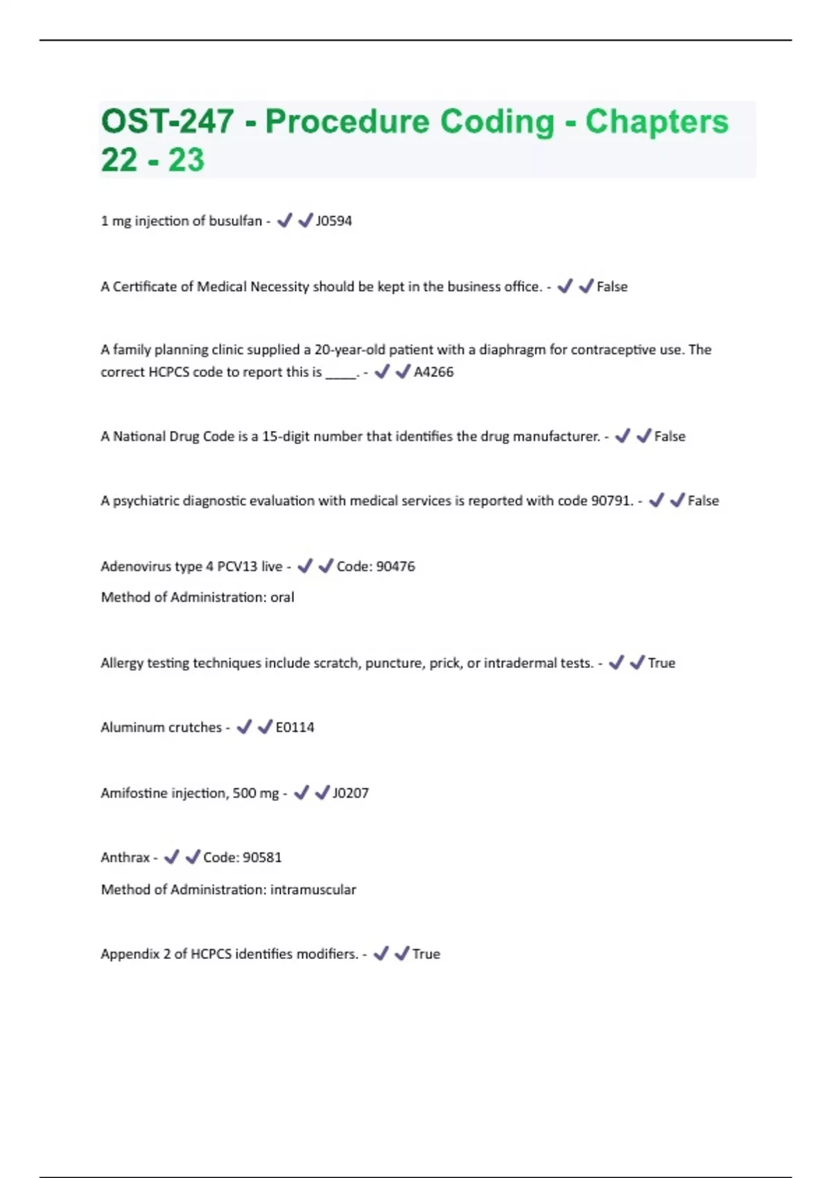 OST-247 - Procedure Coding - Chapters 22 - 23 Questions And Answers!!