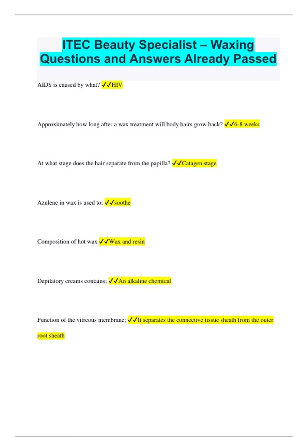 ITEC Beauty Specialist – Waxing Questions and Answers Already Passed