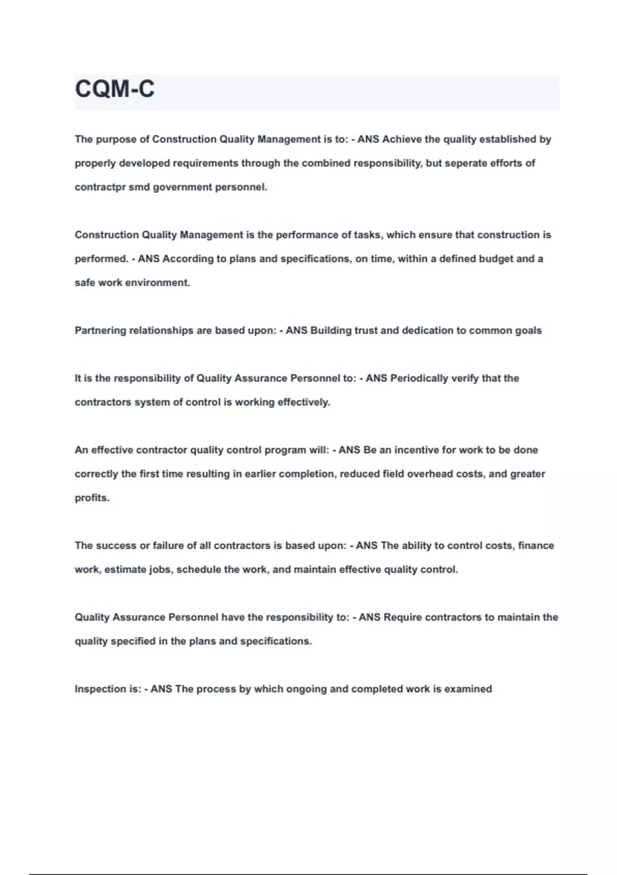 CQM ACTUAL EXAMS & TESTS,,,,QUESTIONS & ANSWERS 2024 ( A+ GRADED 100% VERIFIED)!!!!!ALL BUNDLED HERE!!!!!