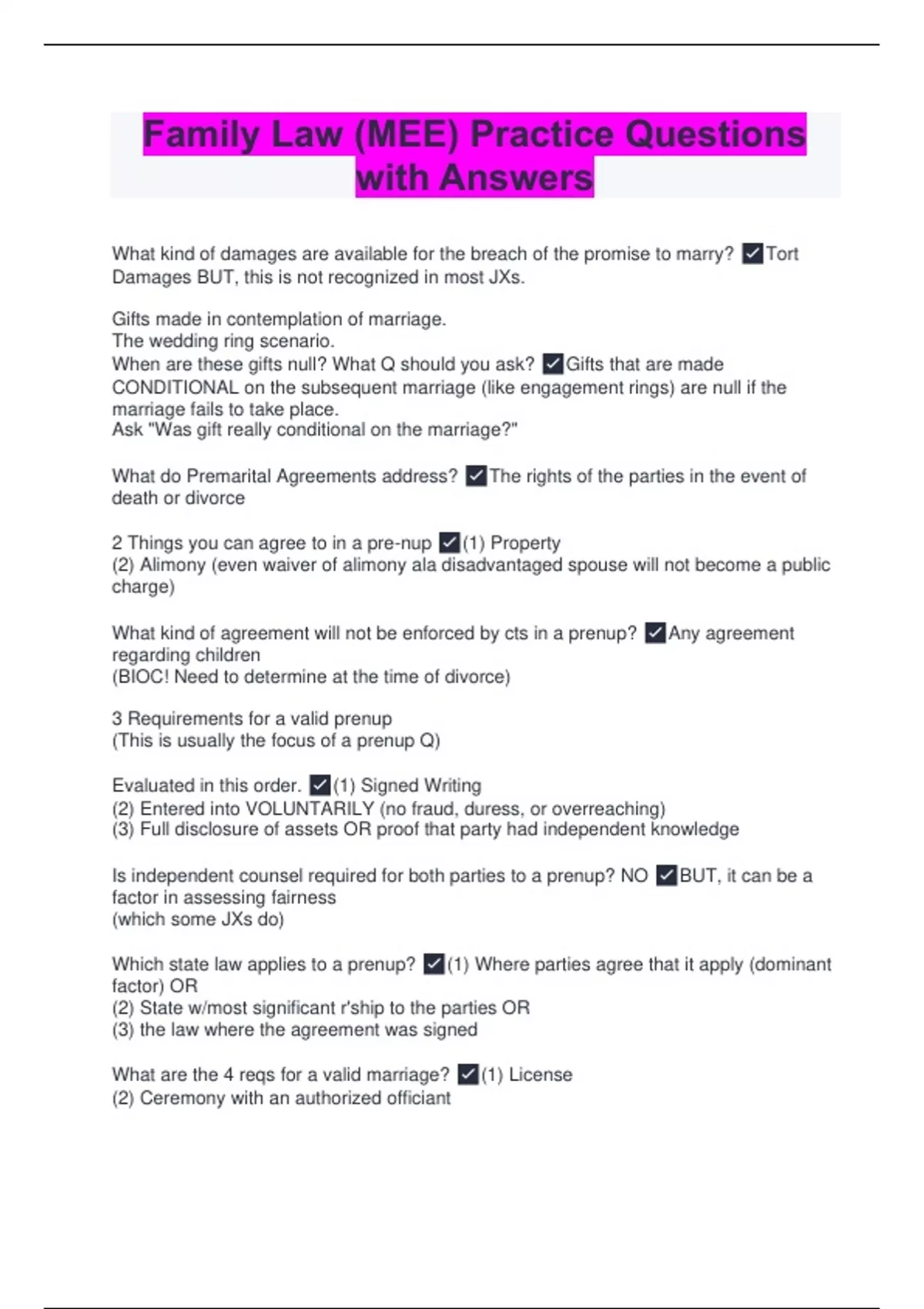 Comprehensive Family Law Q&A E Exam Bundle