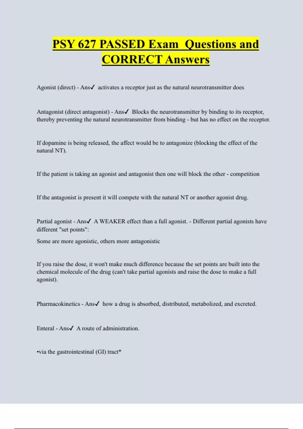 Psy 627 Bundled Exam Questions Package with Correct Answers