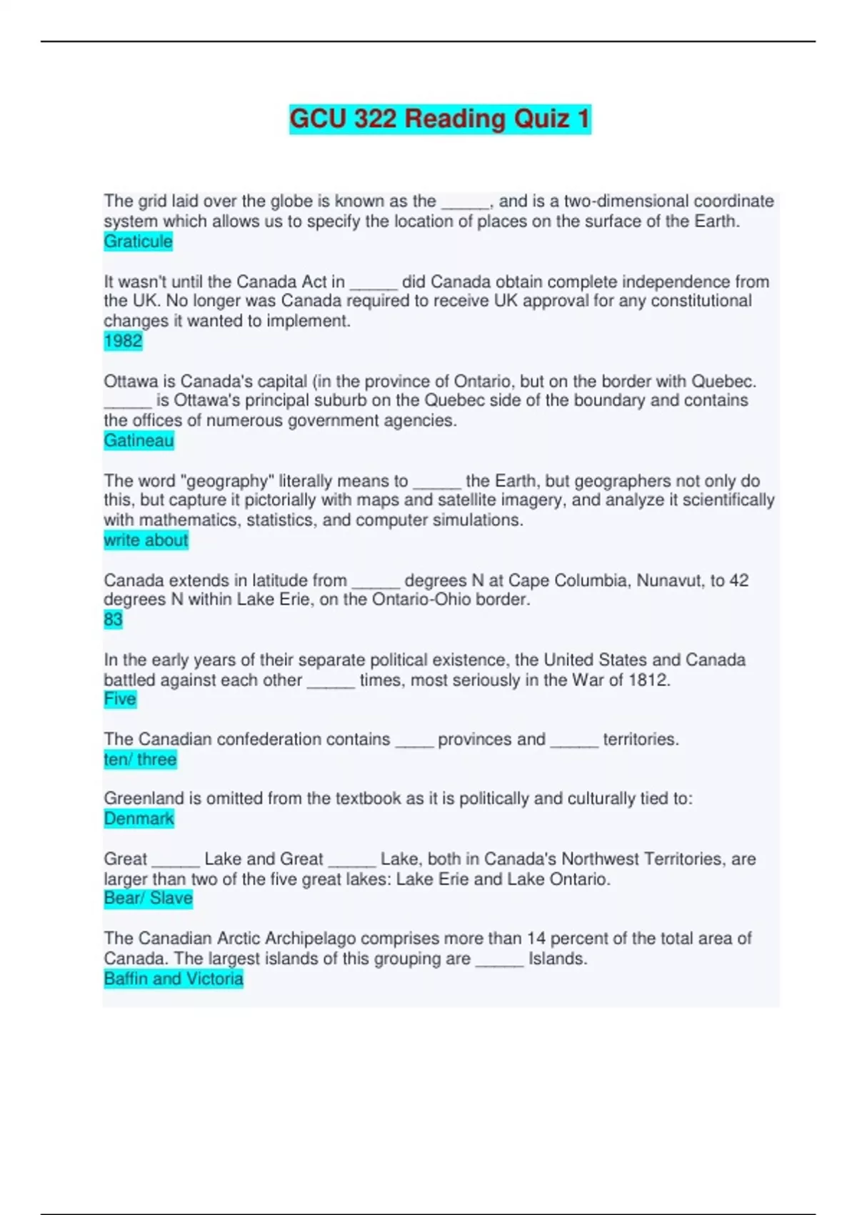 GCU 322 READING QUIZZES 1-3, 5-6, 8- 18 PACKAGE (ARIZONA STATE UNIVERSITY)
