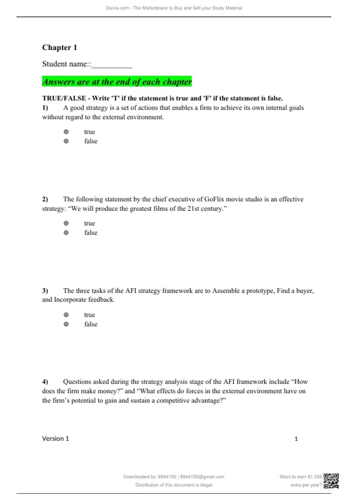 Test Bank Strategic Management 5th Edition by Frank Rothaermel