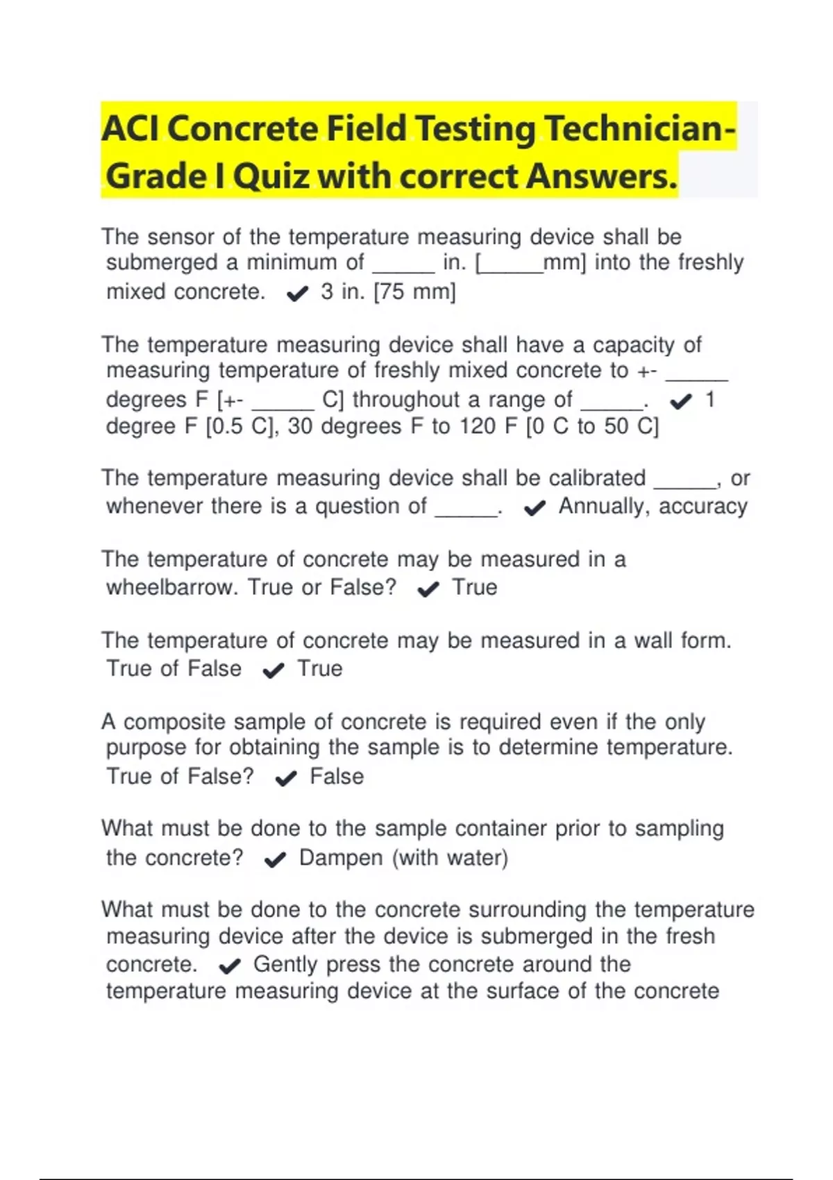 ACI (American Concrete Institute) certification exams PACKAGE DEAL| BUNDLE contains the latest exams, Concrete Field Testing Technician Grade I exams, practice test written exams - Everything you need to pass is here!