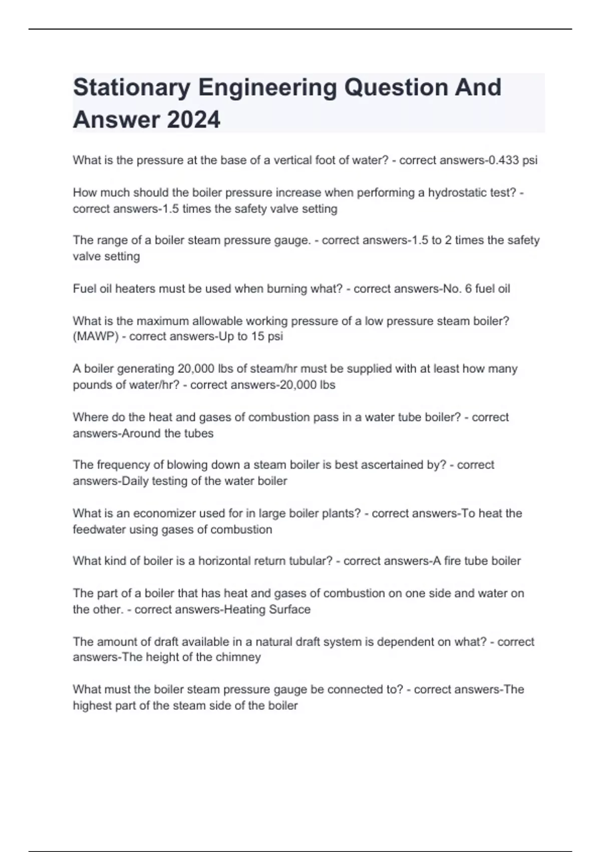 stationary engineer test with correct answers 2024
