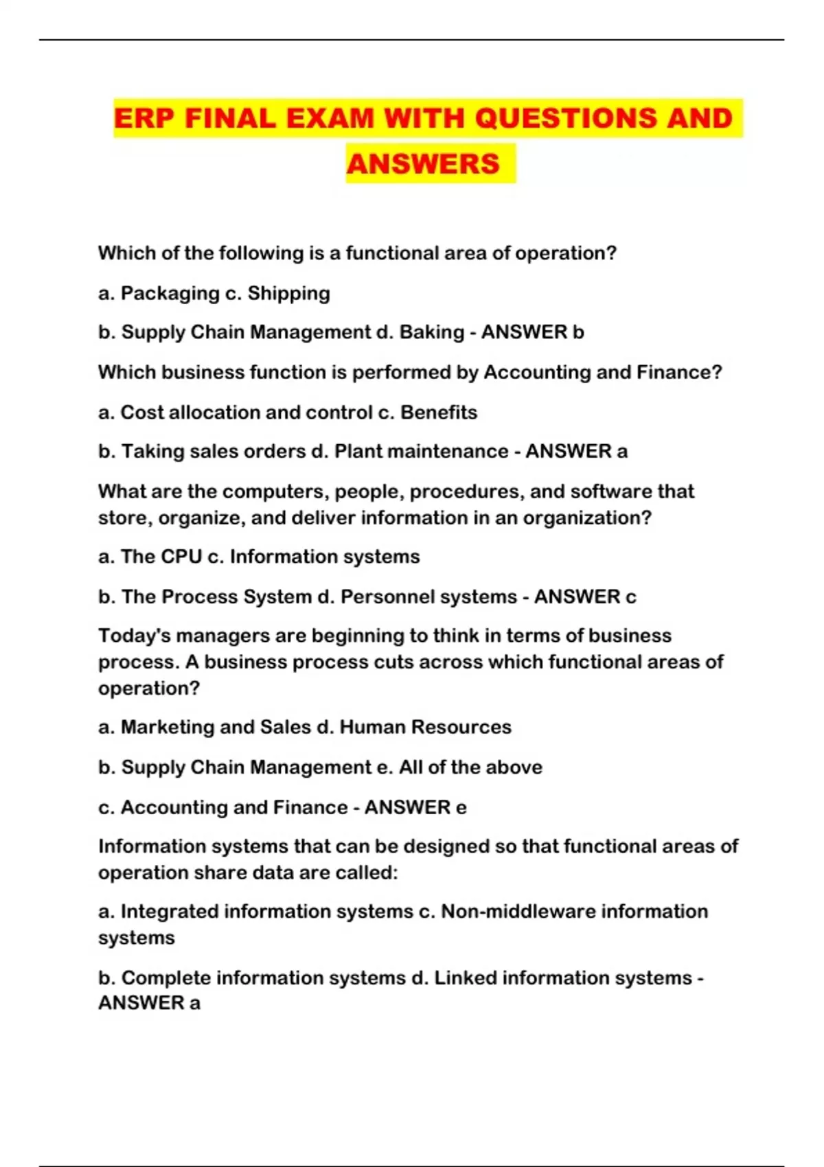 ERP FINAL EXAM WITH QUESTIONS AND ANSWERS