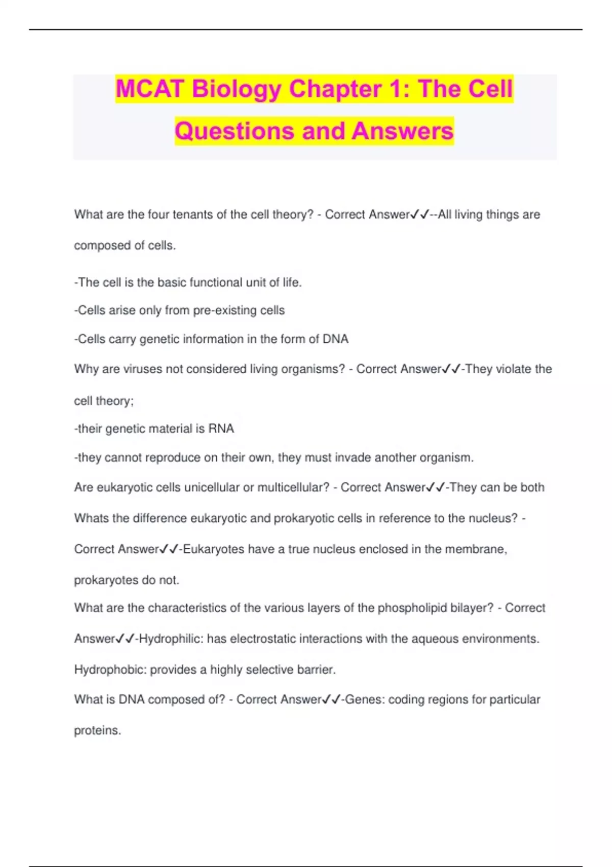 MCAT: Biology Quick Notes with Correct Solutions