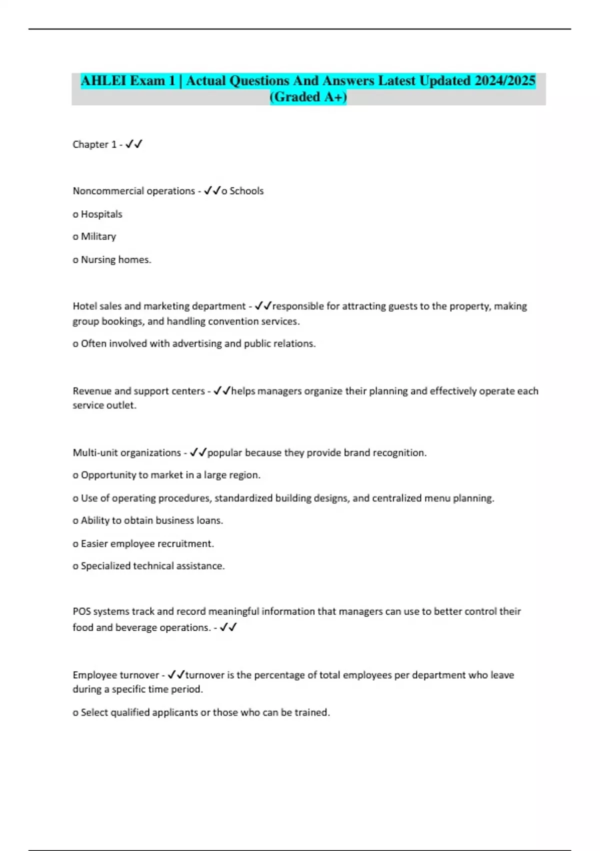 Package deal:: AHLEI Exams | Actual Questions And Answers Latest Updated 2024/2025 (Graded A+)