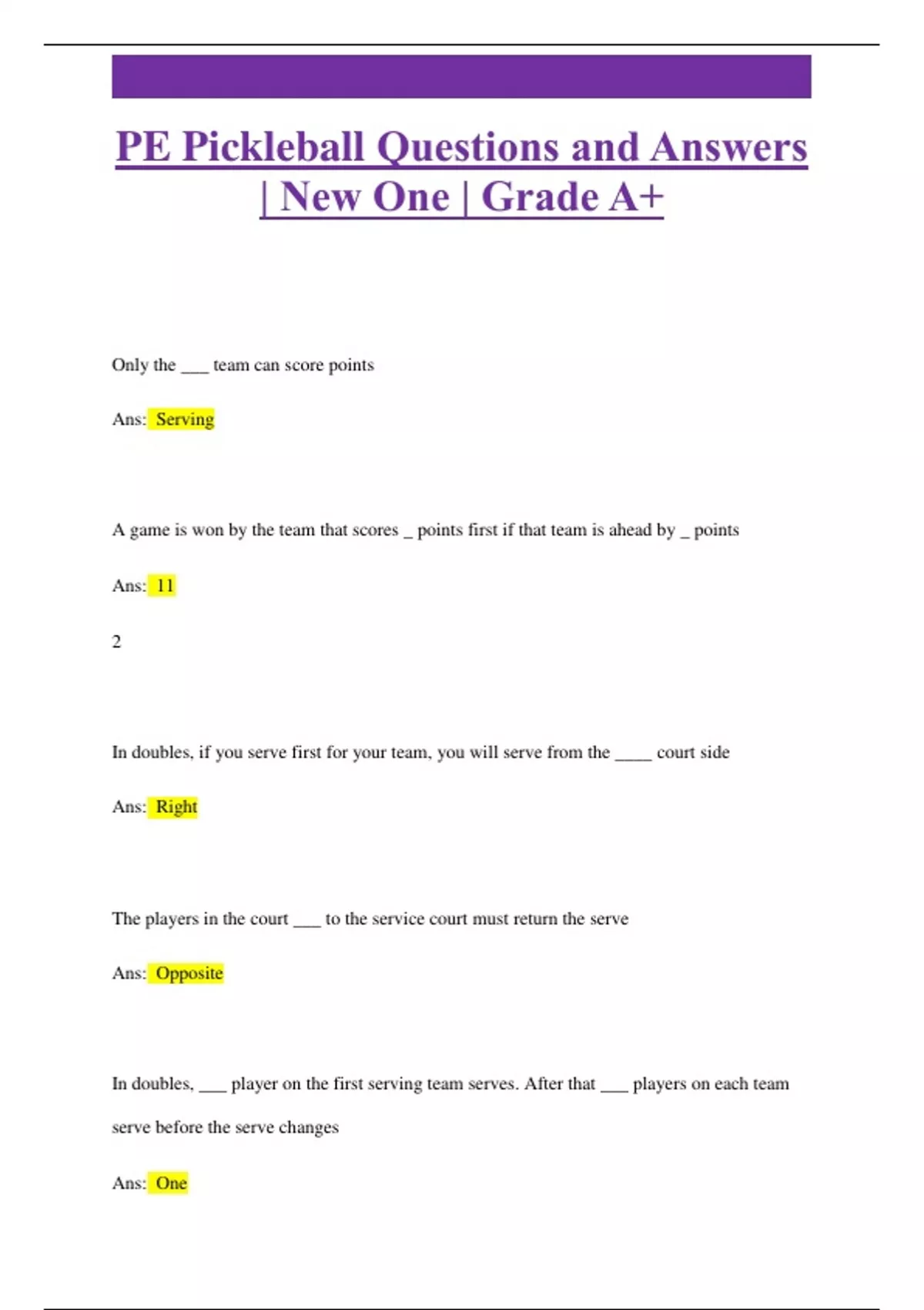 Pickleball Questions and Answers Pack| New One | Grade A+