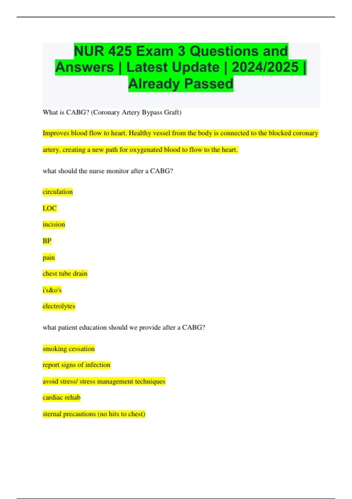 NUR 425 Bundled Exams Questions and Answers Latest Versions (2024/2025) (Complete and Accurate)