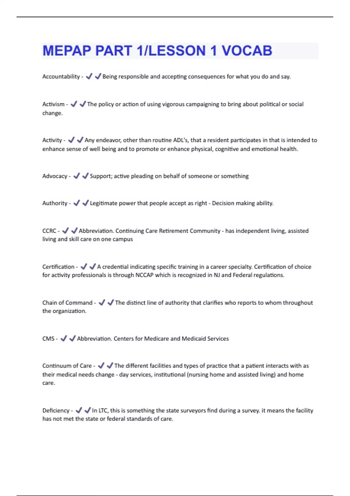 MEPAP 1-1 Quiz 1 Questions And Answers Rated A+