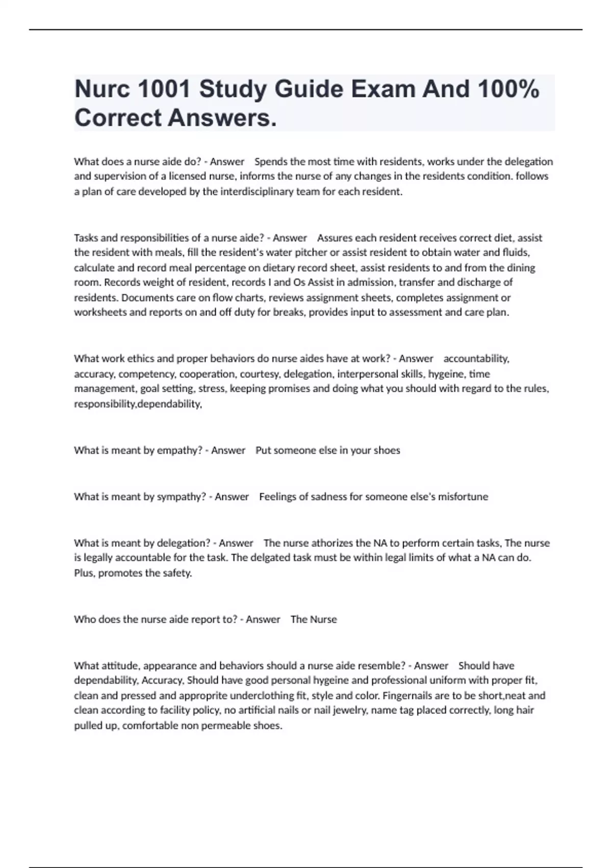 1 Exam (elaborations) Nurc 1001 Study Guide Exam And 100% Correct Answers. 2 Exam (elaborations) NURC 1001 EXAM 1 QUESTIONS WITH COMPLETE SOLUTIONS 2024. 3 Exam (elaborations) Bnur 1001 Practice Exam Questions With Correct Answers. 4 Exam (elaborations) Nursing 1001 Final Exam Questions With Fully Complete Answers.