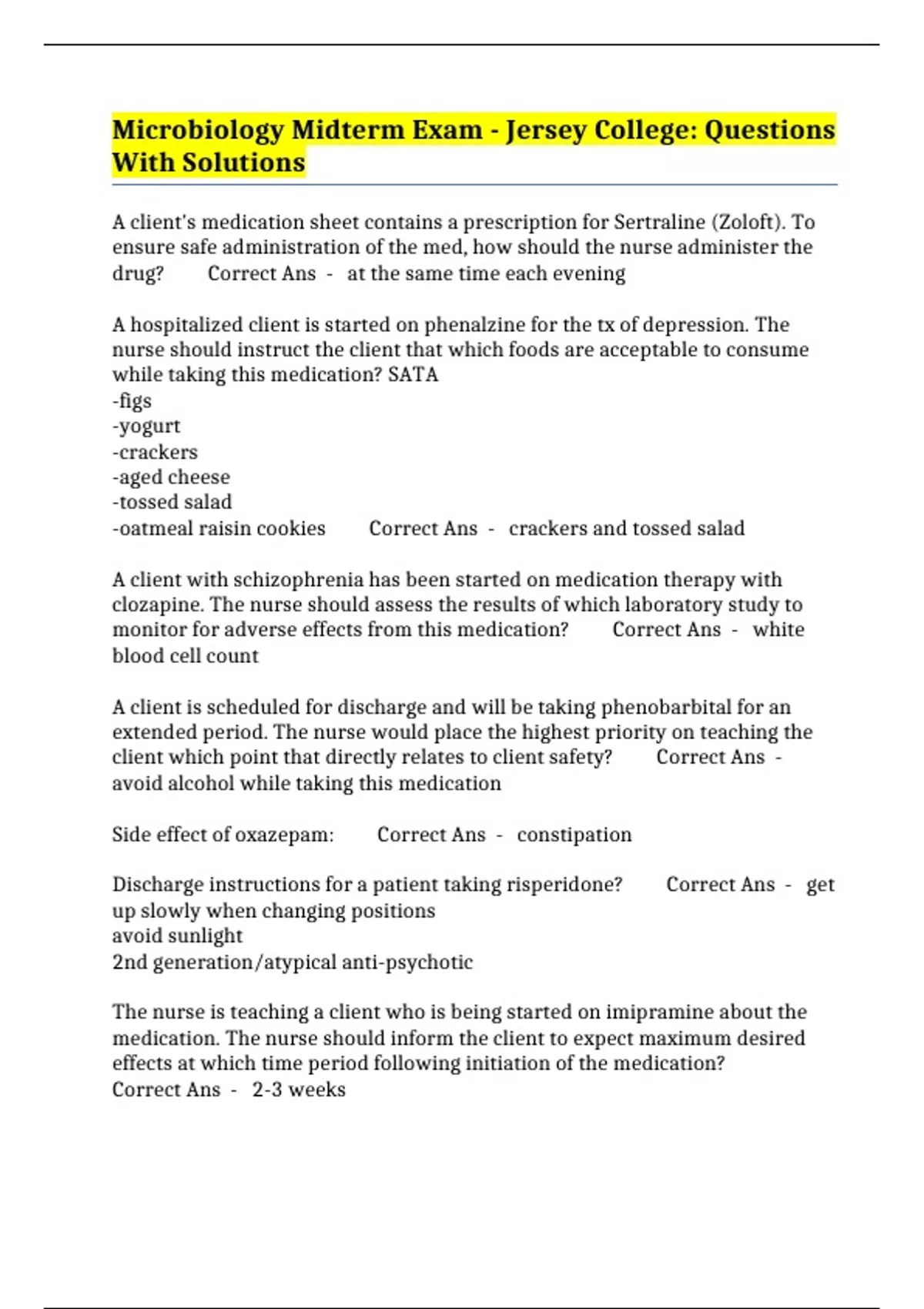 PACKAGE::- MICROBIOLOGY MIDTERM EXAMS - JERSEY COLLEGE