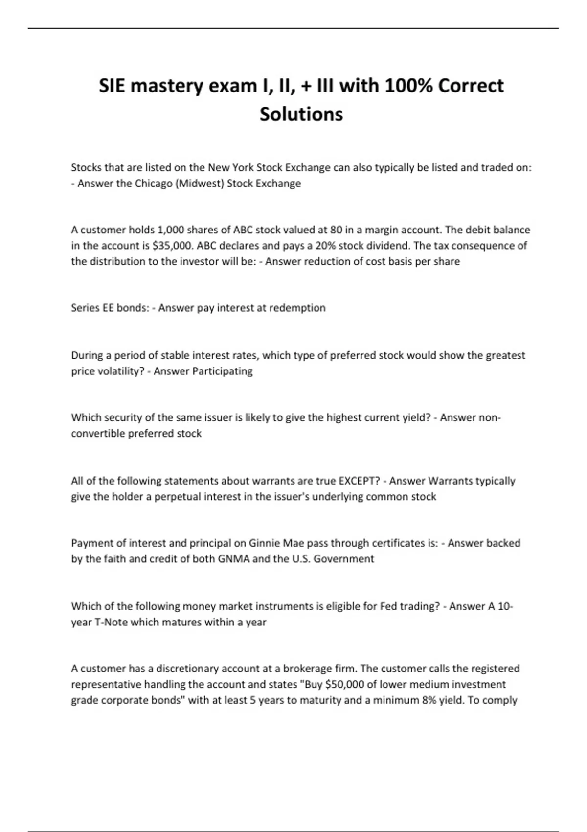 SIE mastery exam I, II, + III with 100% Correct Solutions