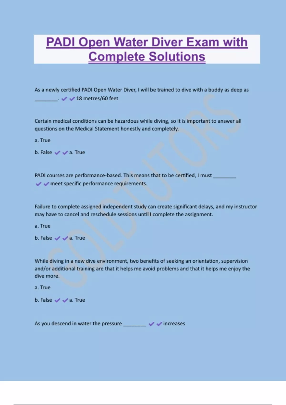 FULL BUNDLE;;;PADI Open Water Diver EXAMS WITH COMPLETE SOLUTIONS