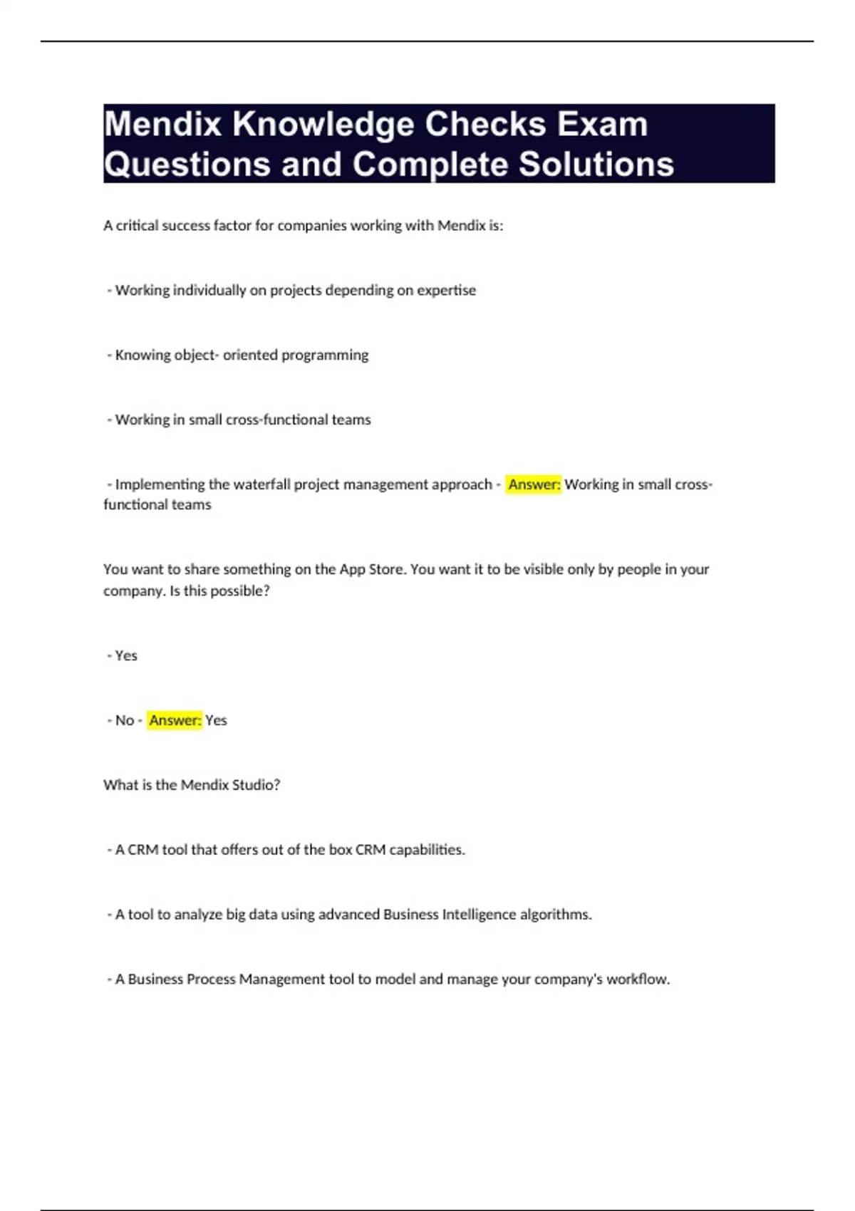 Mendix Intermediate Exam Questions and Complete Solution Bundle Compilation Graded A+