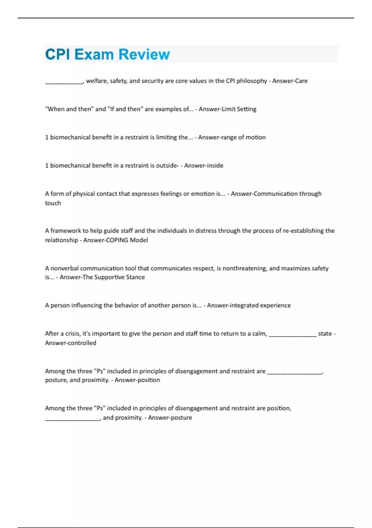 CPI Instructor Exam Questions & Answers Already Passed!!