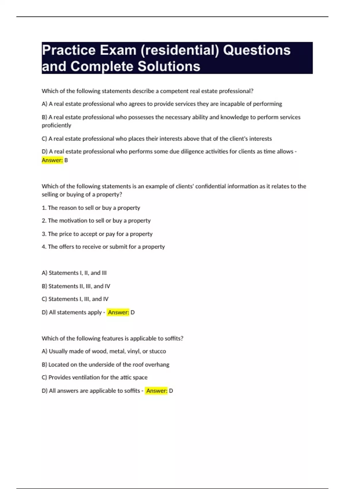 Real Estate Practice Exam Questions and Complete Solutions Bundle Compilation Graded A+