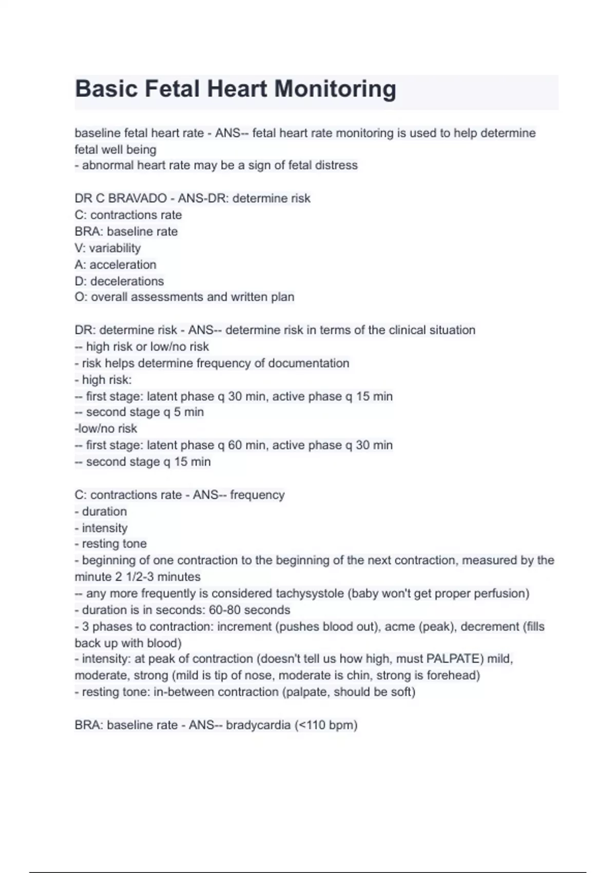 Basic Fetal Heart Monitoring Questions with 100% Actual correct answers | verified | latest update | Graded A+ | Already Passed | Complete Solution
