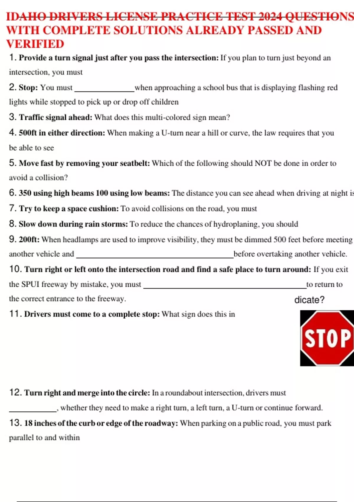 ARIZONA DRIVERS LICENSE PRACTICE TEST 2024 QUESTIONS WITH COMPLETE SOLUTIONS ALREADY PASSED AND VERIFIED/DRIVER LICENSE PRACTICE TEST 2024 QUESTIONS WITH COMPLETE SOLUTIONS ALREADY PASSED AND VERIFIED/IDAHO DRIVERS LICENSE PRACTICE TEST 2024 QUESTIONS WITH COMPLETE SOLUTIONS ALREADY PASSED AND VERIFIED