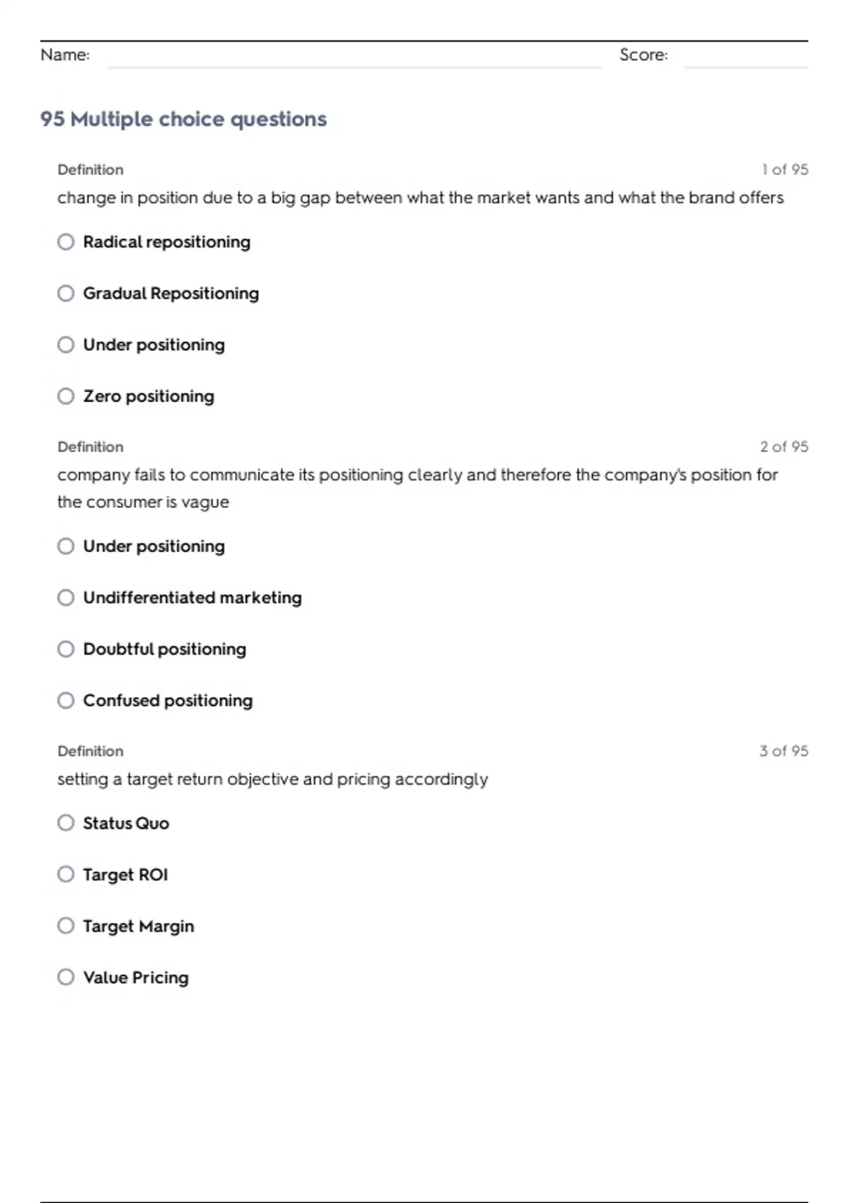 MBA 706 TEST 1 STUDY GUIDE QUESTIONS WITH CORRECT MARKING SCHEME