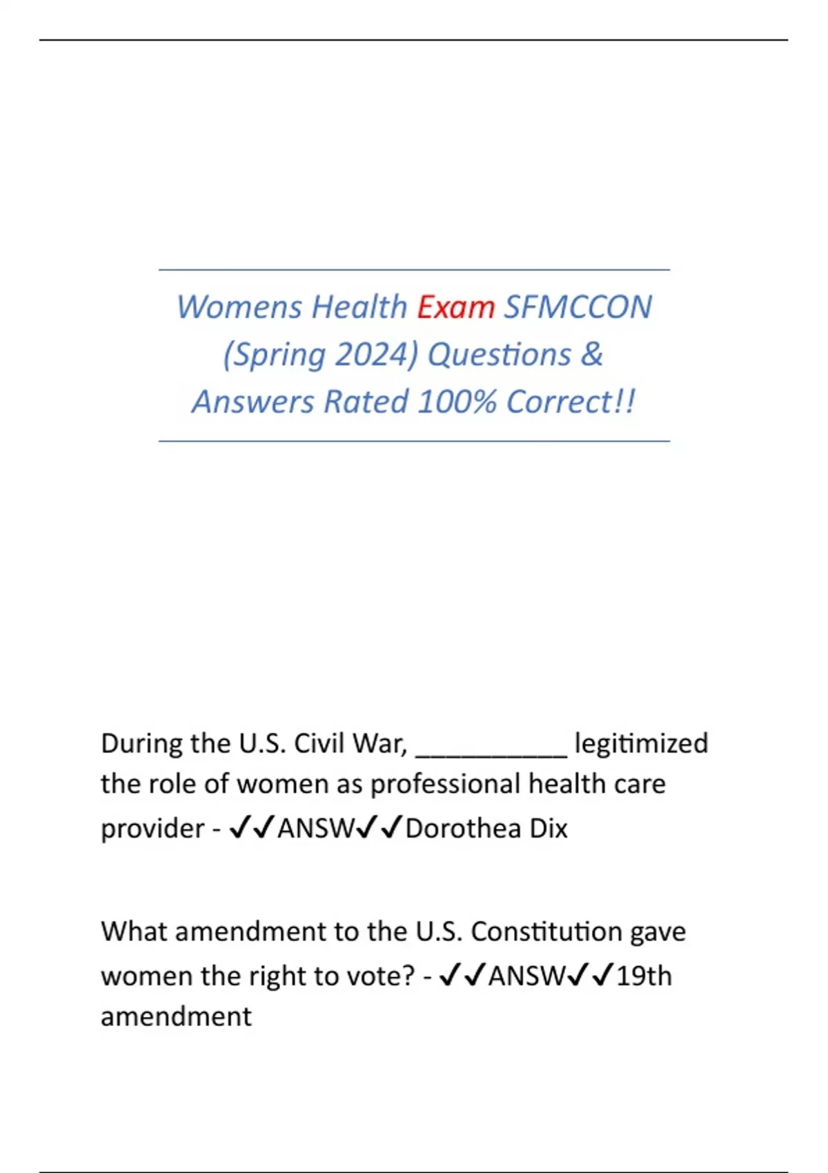 Womens Health Exam 4 Review SFMCCON (Spring 2024) Questions & Answers Rated 100% Correct!!