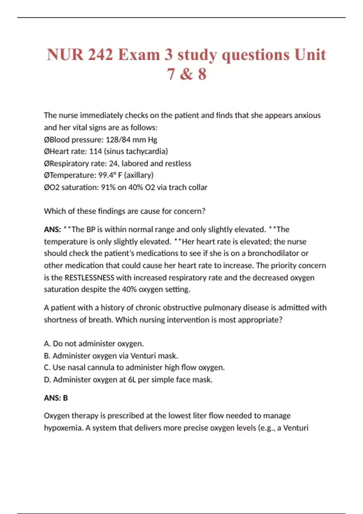 Exam (elaborations) Exam 1: NUR242/ NUR 242 (Latest 2023/ 2024) Medical-Surgical Nursing Exam | Questions and Verified Answers| 100% Correct| Grade A- Galen 2 Exam (elaborations) Exam 1: NUR242/ NUR 242 (Latest 2023/ 2024) Medical-Surgical Nursing Exam | Questions and Verified Answers| 100% Correct| Grade A- Galen 3 Exam (elaborations) Exam 3: NUR