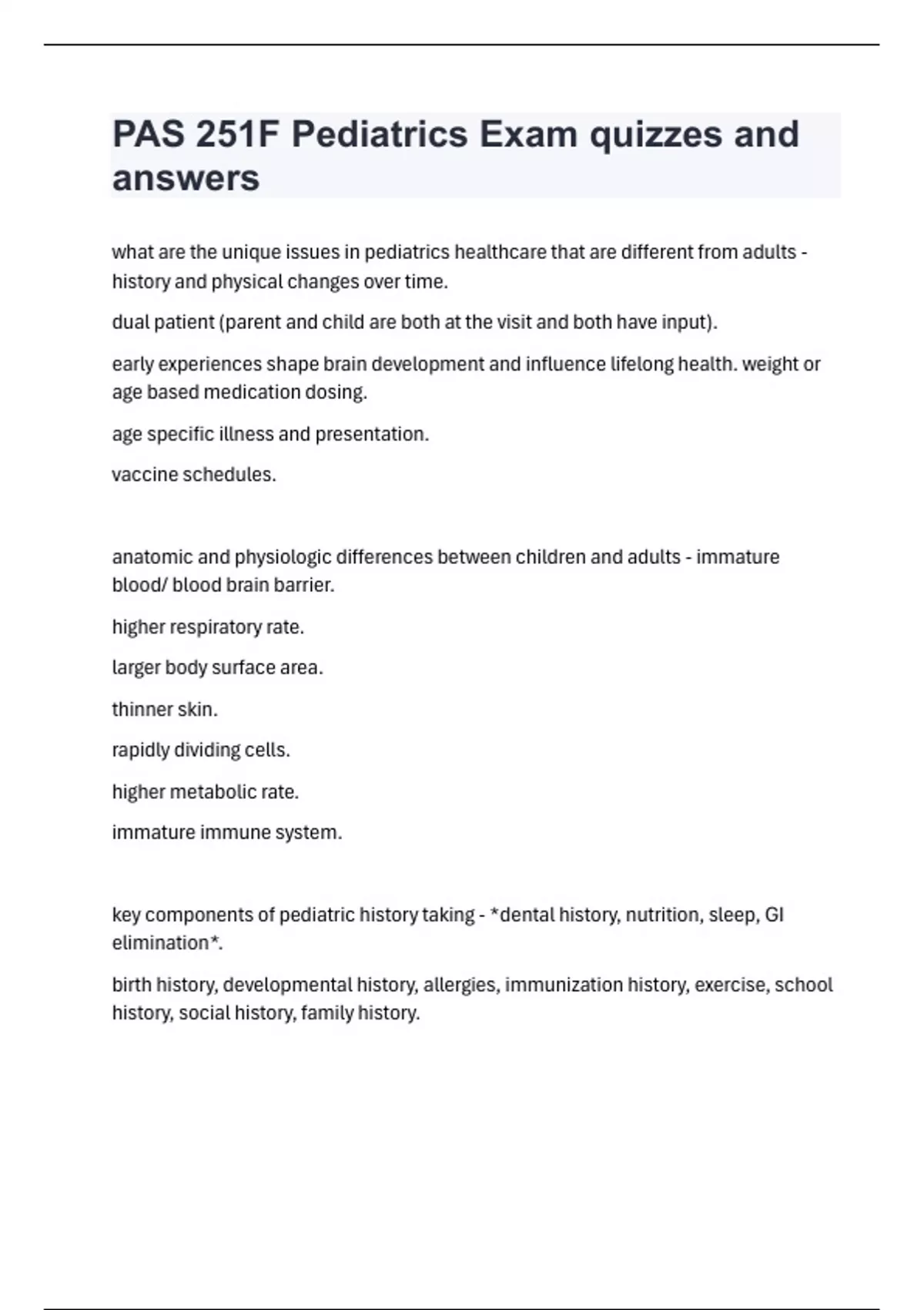 PAS 251F Pediatrics Exam quizzes and answers bundle!!